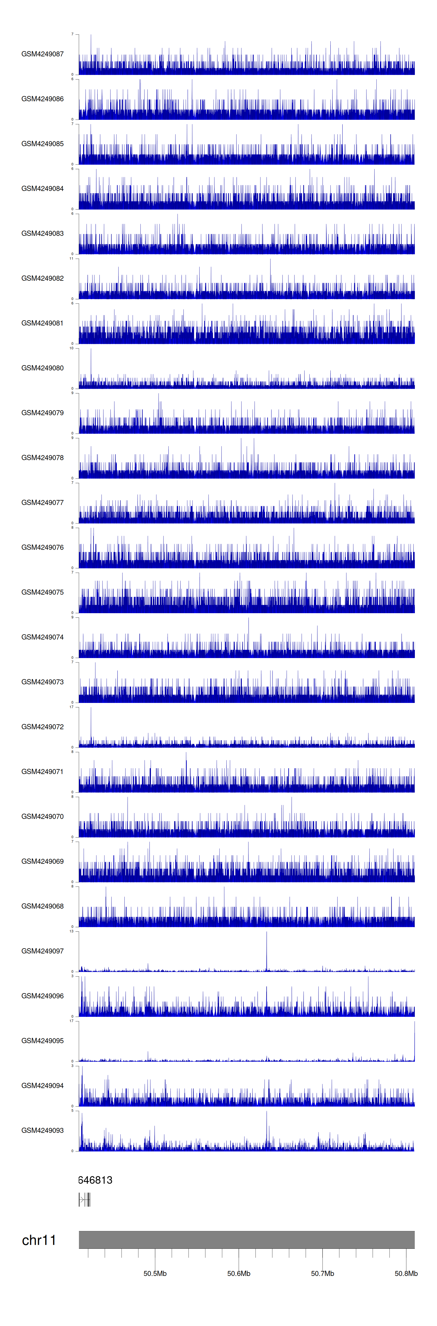 > Dataset: GSE143026 - LOC646813 peak across samples