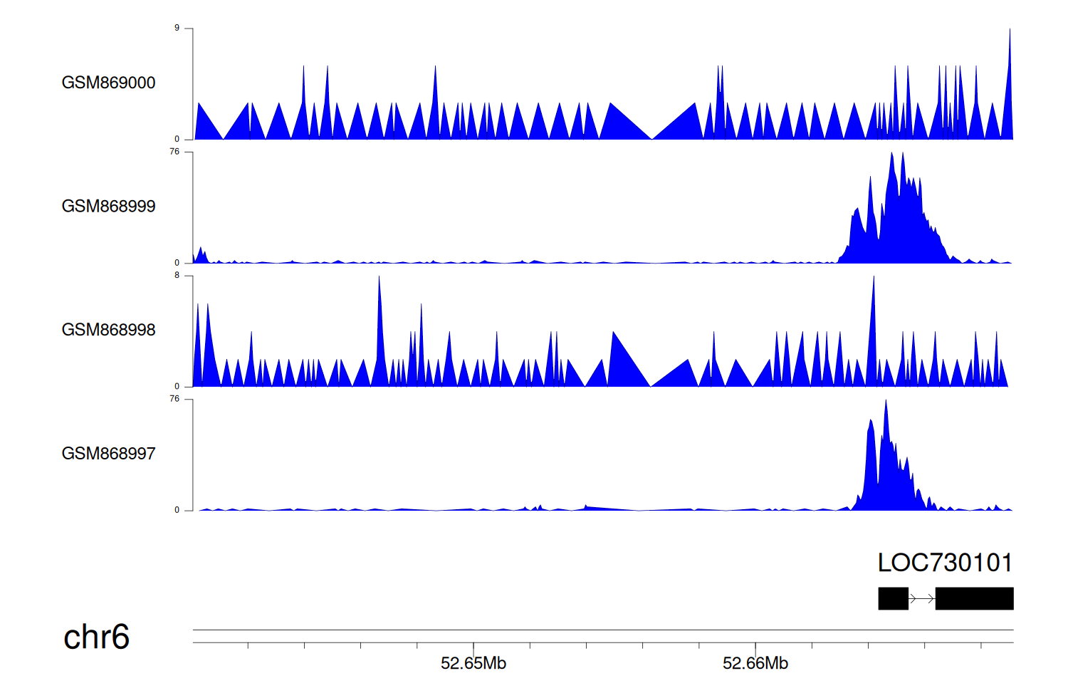 > Dataset: GSE68402 - LOC730101 peak across samples