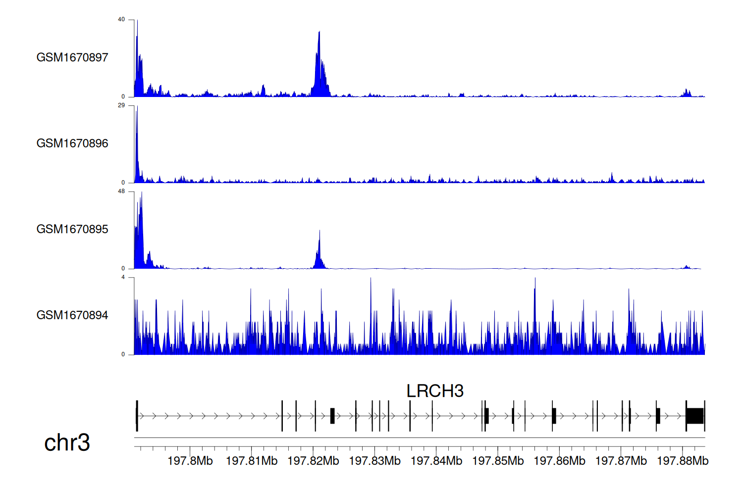 > Dataset: GSE68402 - LRCH3 peak across samples