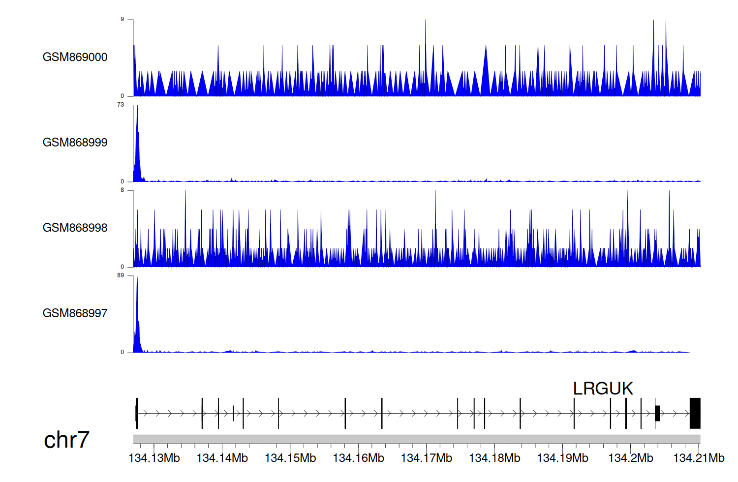 > Dataset: GSE131257 - LRGUK peak across samples