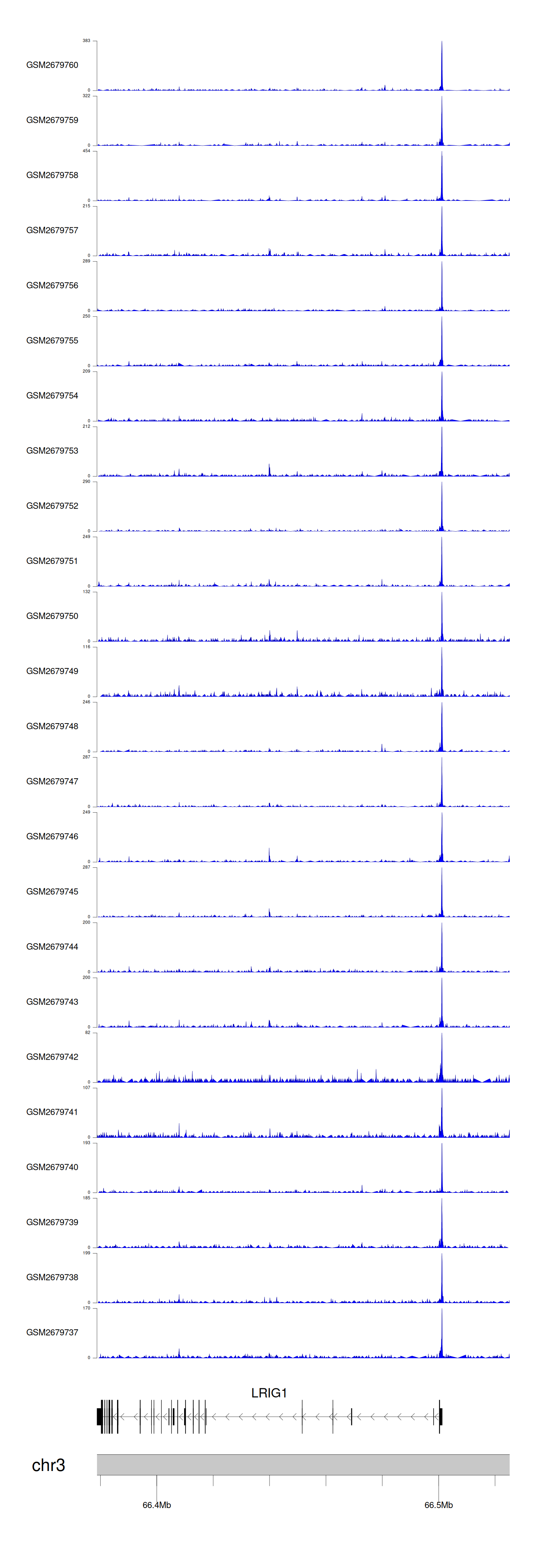> Dataset: GSE100376 - LRIG1 peak across samples