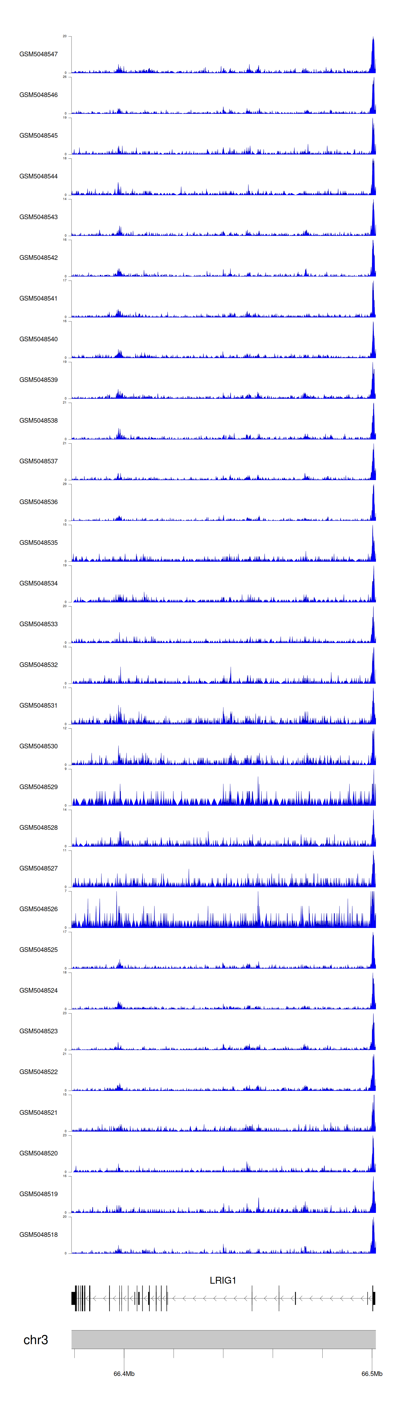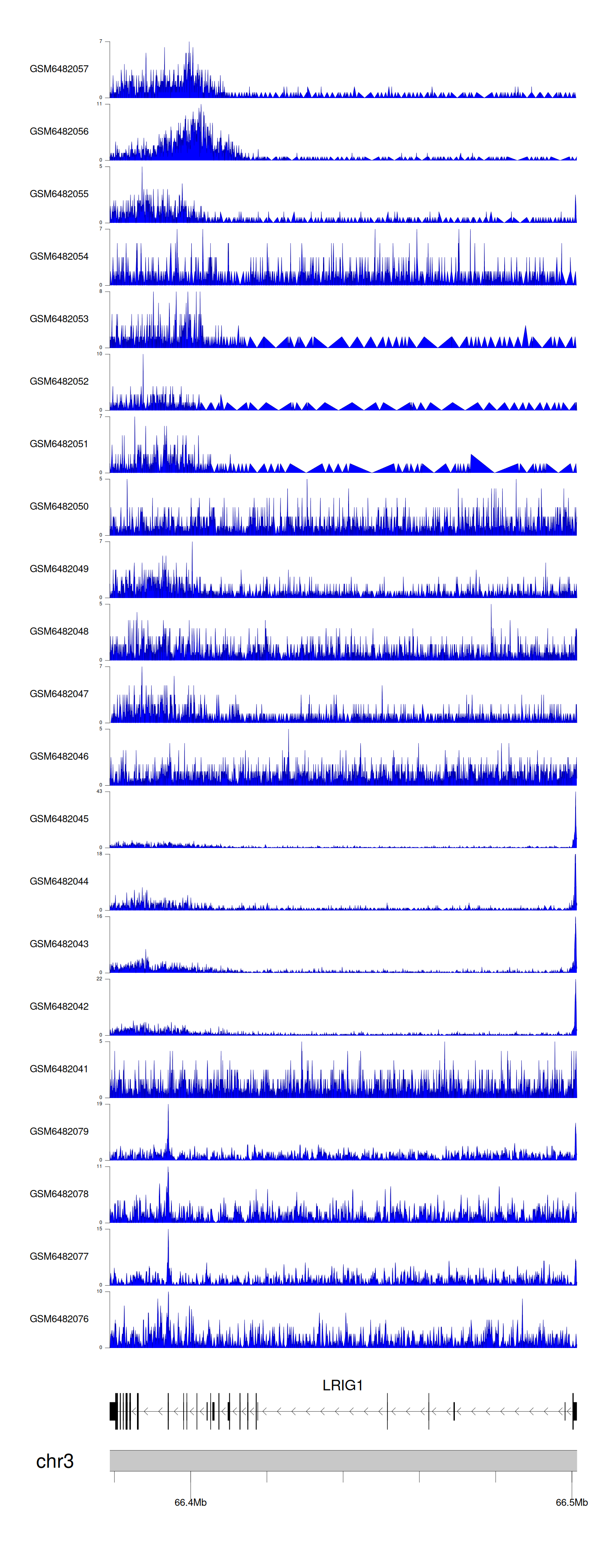 > Dataset: GSE165703 - LRIG1 peak across samples