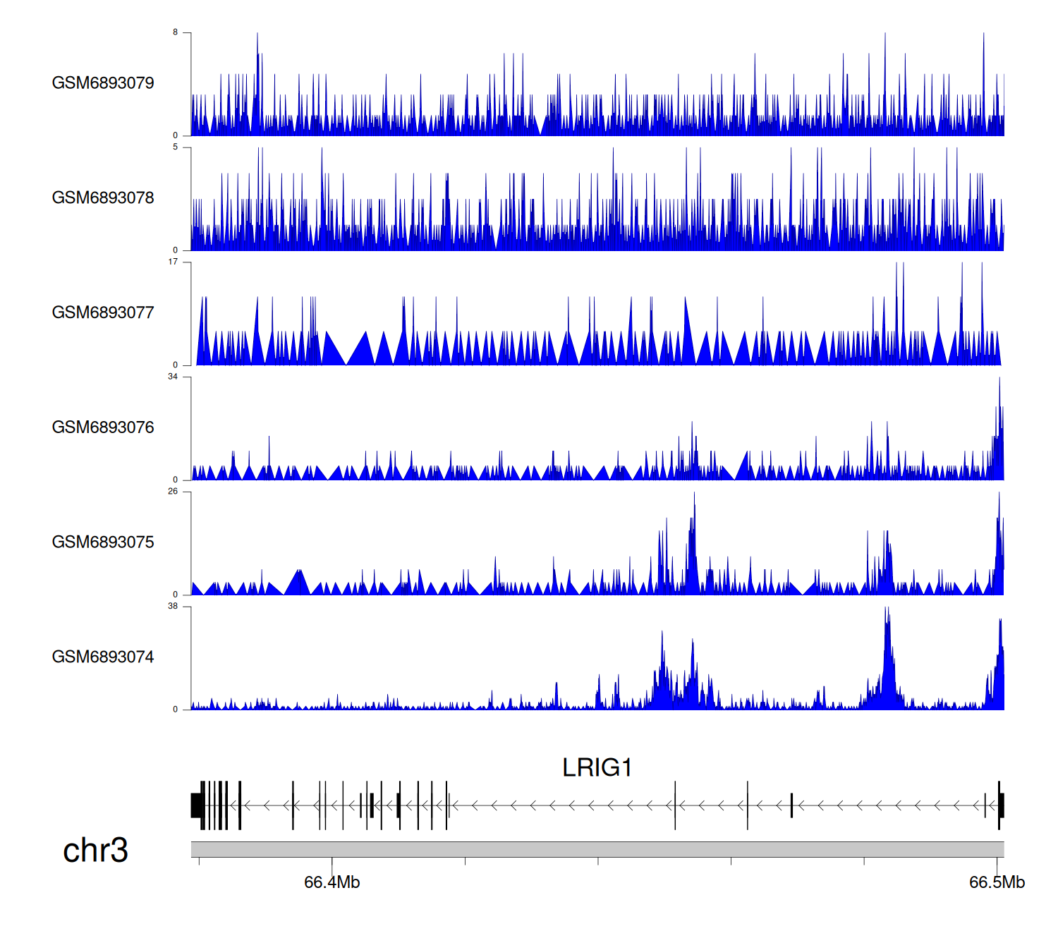 > Dataset: GSE211651 - LRIG1 peak across samples