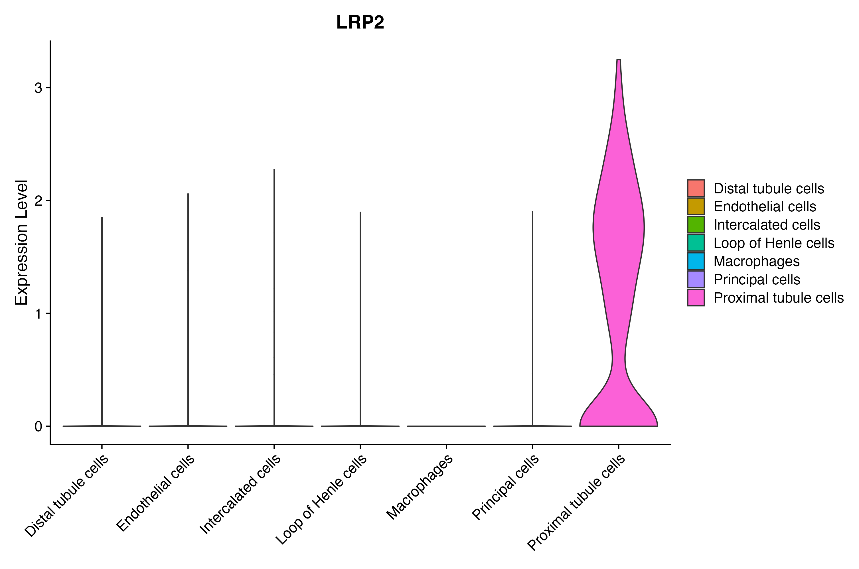 The protein encoded by this gene, low density lipoprotein-related protein 2 (LRP2) or megalin, is a multi-ligand endocytic receptor that is expressed in many different tissues but primarily in absorptive epithilial tissues such as the kidney. This glycoprotein has a large amino-terminal extracellular domain, a single transmembrane domain, and a short carboxy-terminal cytoplasmic tail. The extracellular ligand-binding-domains bind diverse macromolecules including albumin, apolipoproteins B and E, and lipoprotein lipase. The LRP2 protein is critical for the reuptake of numerous ligands, including lipoproteins, sterols, vitamin-binding proteins, and hormones. This protein also has a role in cell-signaling; extracellular ligands include parathyroid horomones and the morphogen sonic hedgehog while cytosolic ligands include MAP kinase scaffold proteins and JNK interacting proteins. Recycling of this membrane receptor is regulated by phosphorylation of its cytoplasmic domain. Mutations in this gene cause Donnai-Barrow syndrome (DBS) and facio-oculoacoustico-renal syndrome (FOAR).[provided by RefSeq, Aug 2009] |