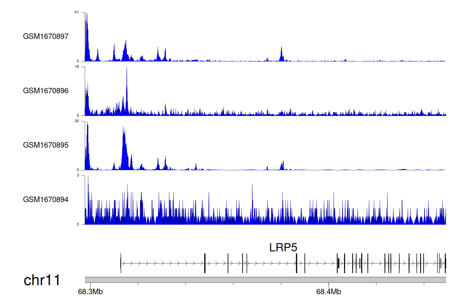 > Dataset: GSE68402 - LRP5 peak across samples