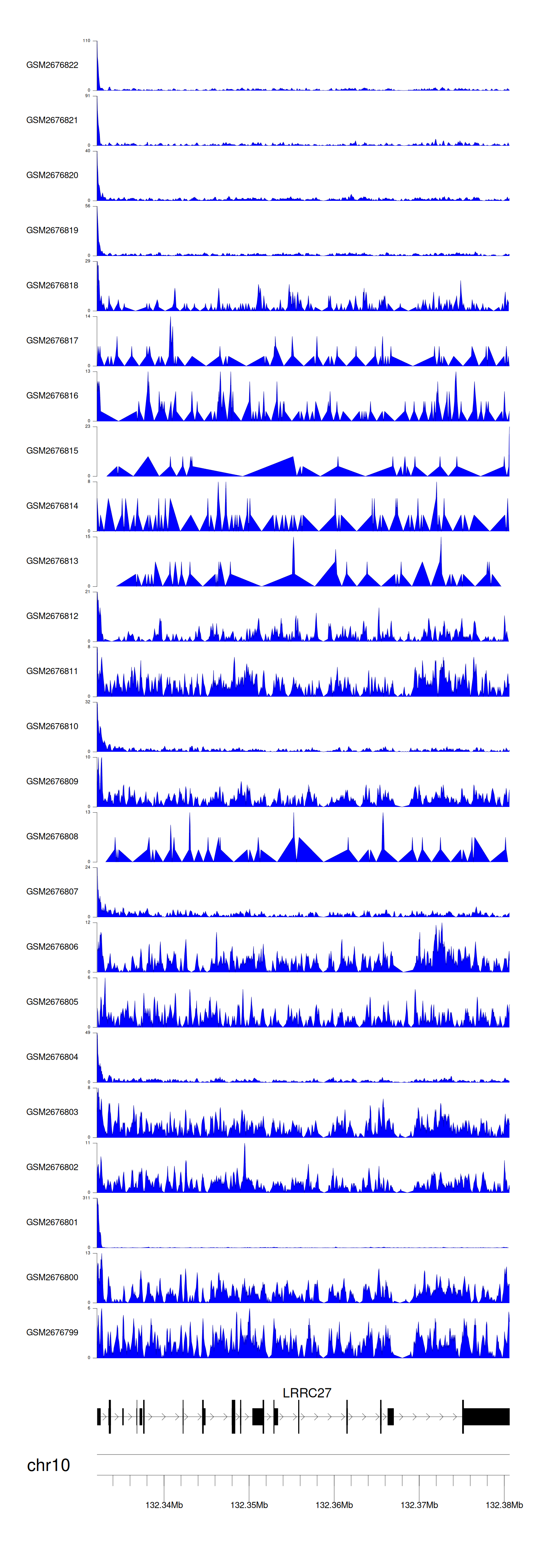 > Dataset: GSE100376 - LRRC27 peak across samples