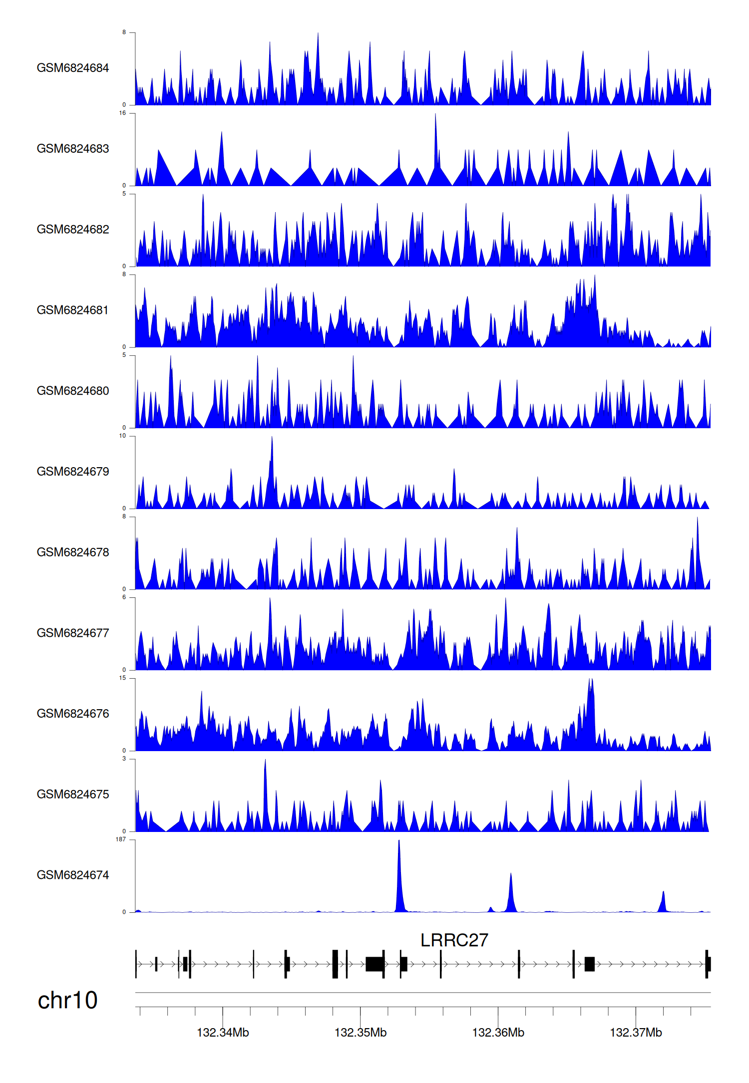 > Dataset: GSE144329 - LRRC27 peak across samples