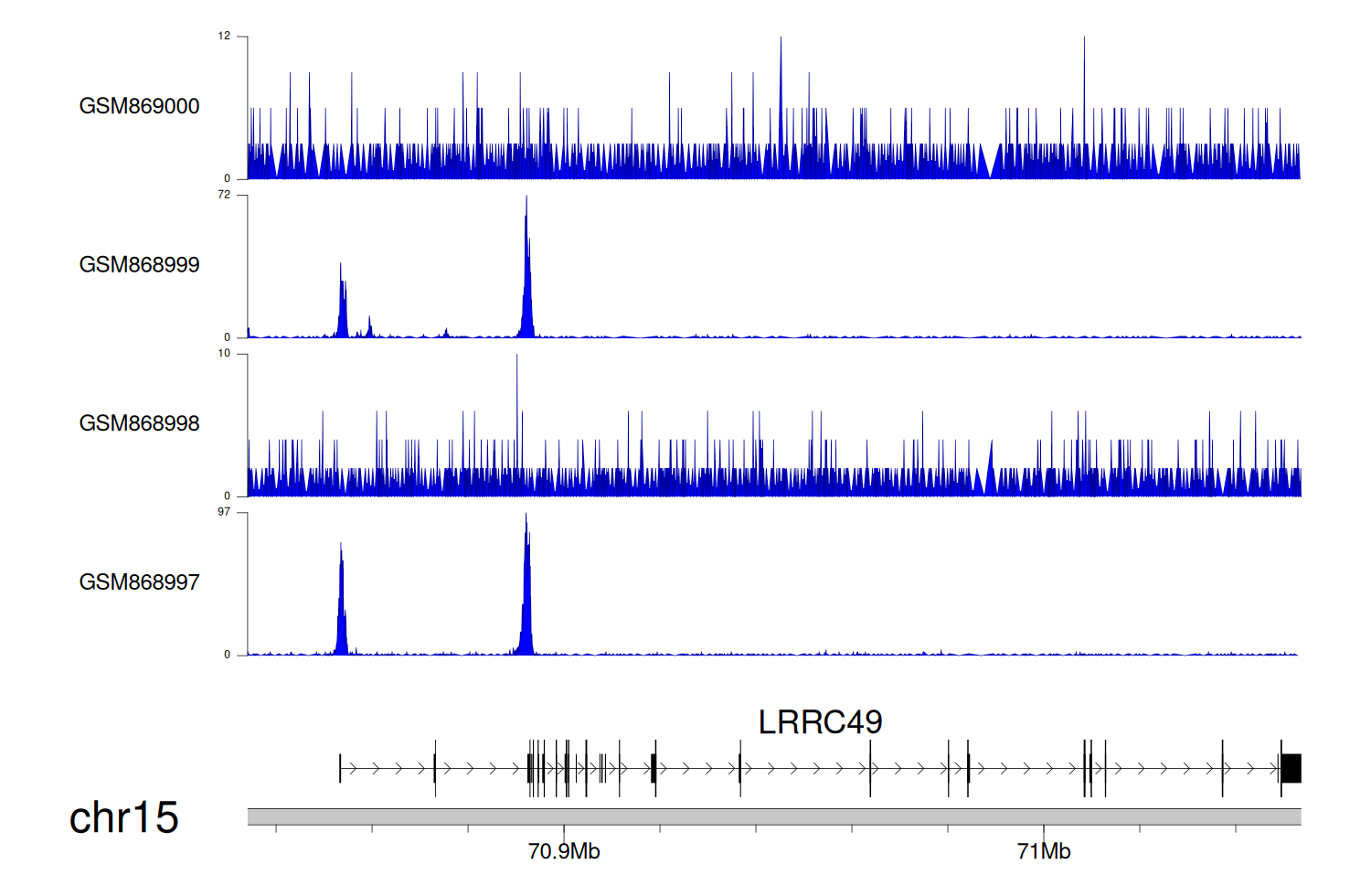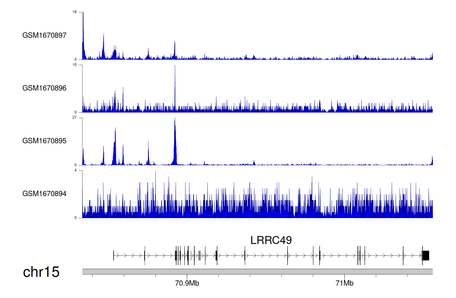 > Dataset: GSE68402 - LRRC49 peak across samples