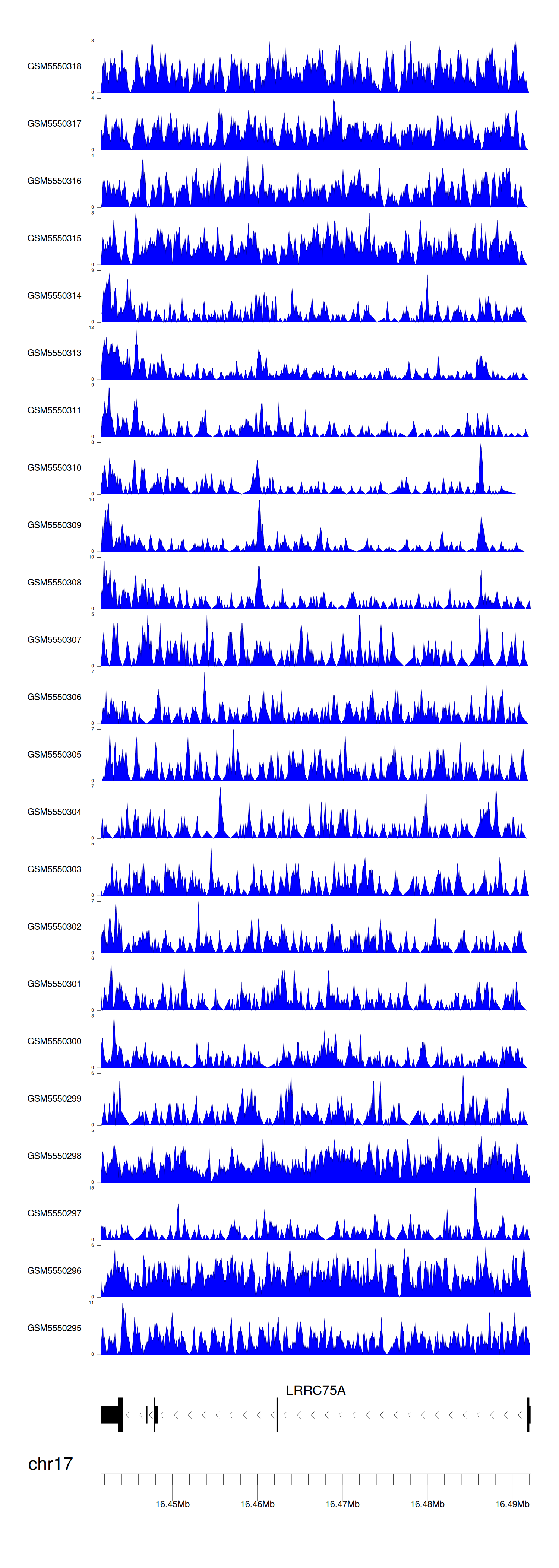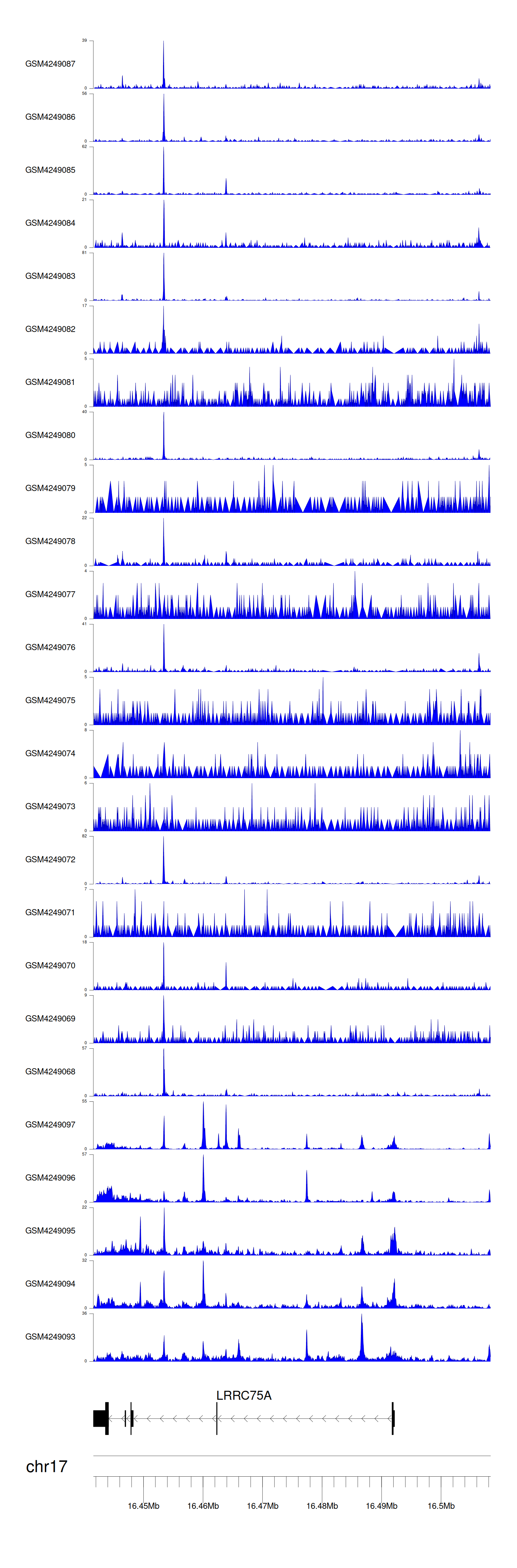 > Dataset: GSE143026 - LRRC75A peak across samples