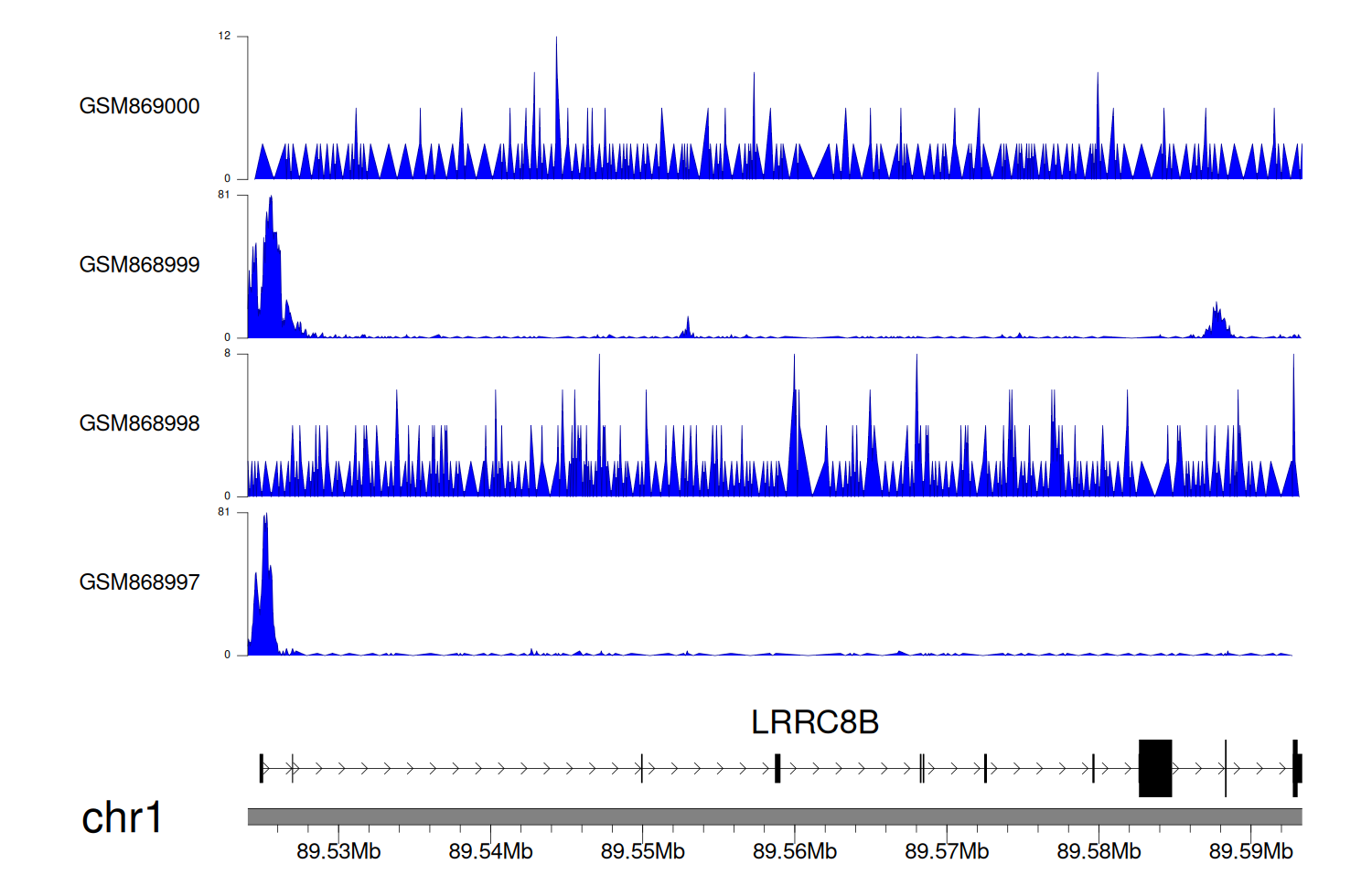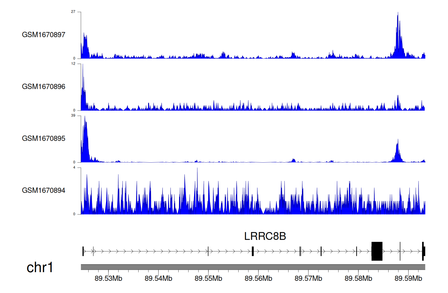 > Dataset: GSE68402 - LRRC8B peak across samples