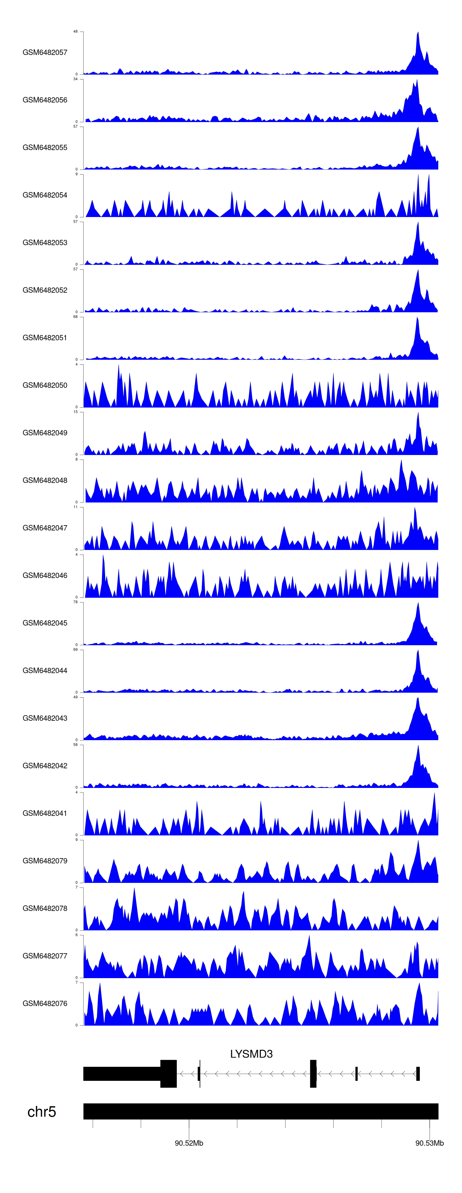 > Dataset: GSE165703 - LYSMD3 peak across samples