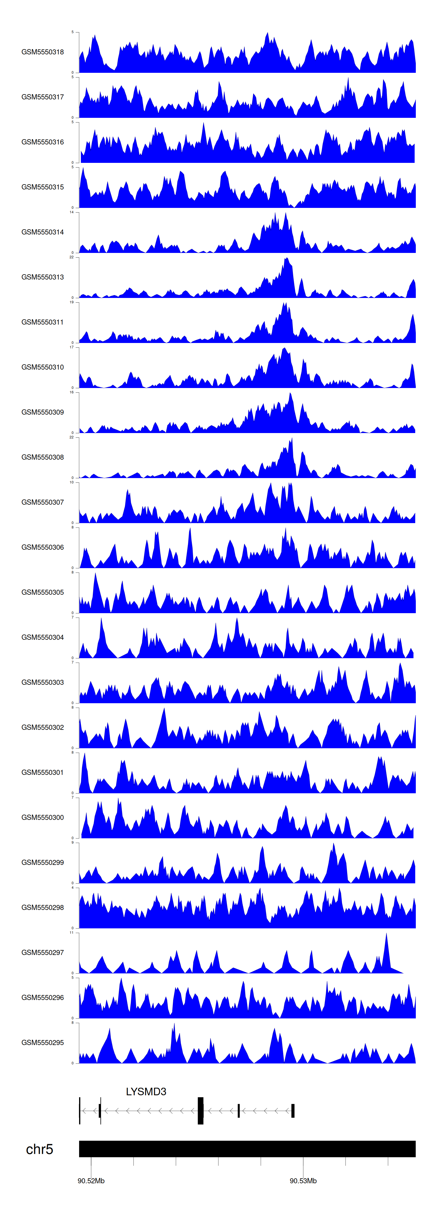 > Dataset: GSE143026 - LYSMD3 peak across samples
