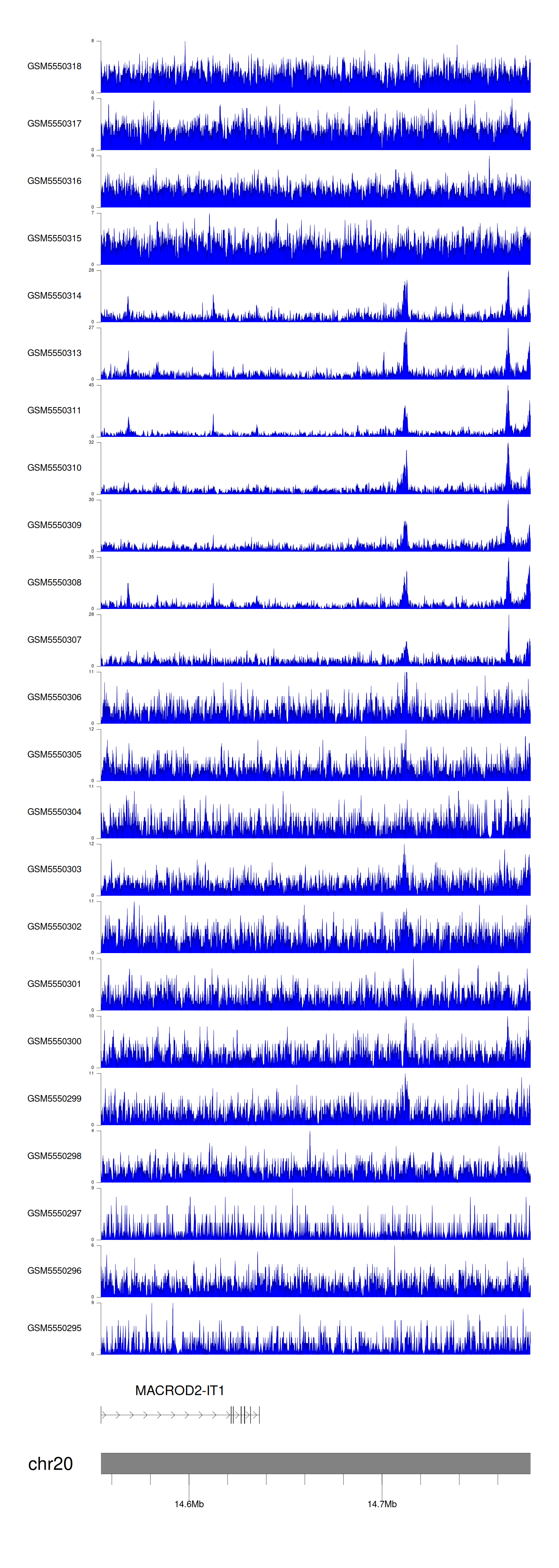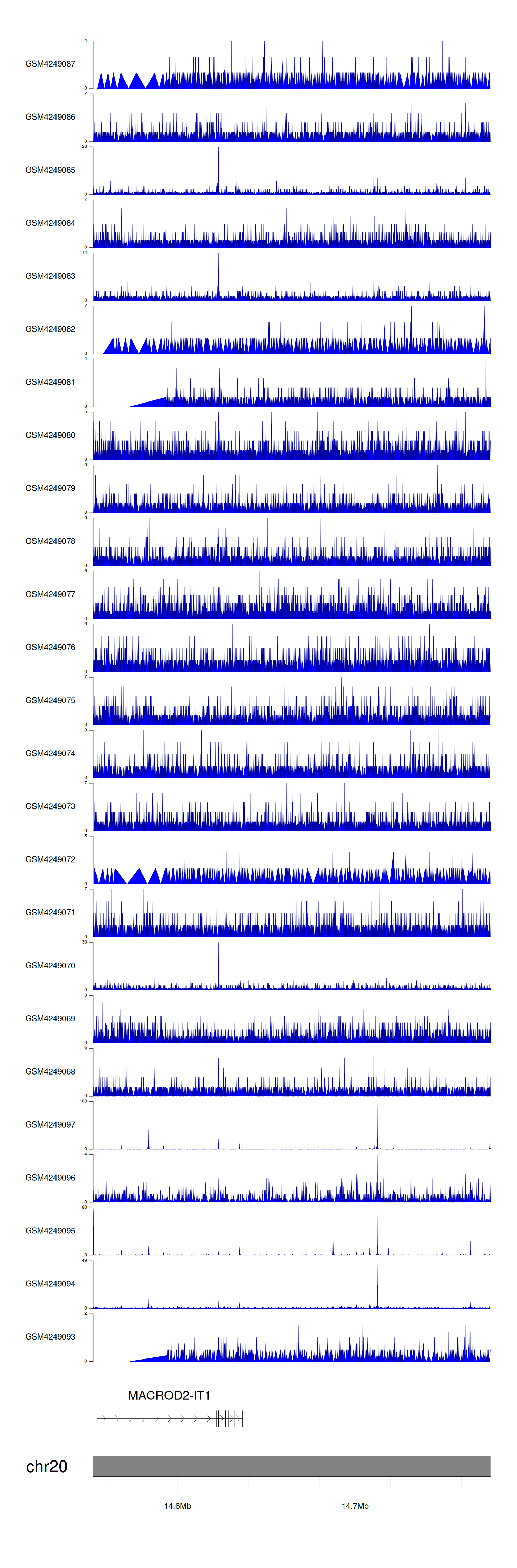 > Dataset: GSE143026 - MACROD2-IT1 peak across samples