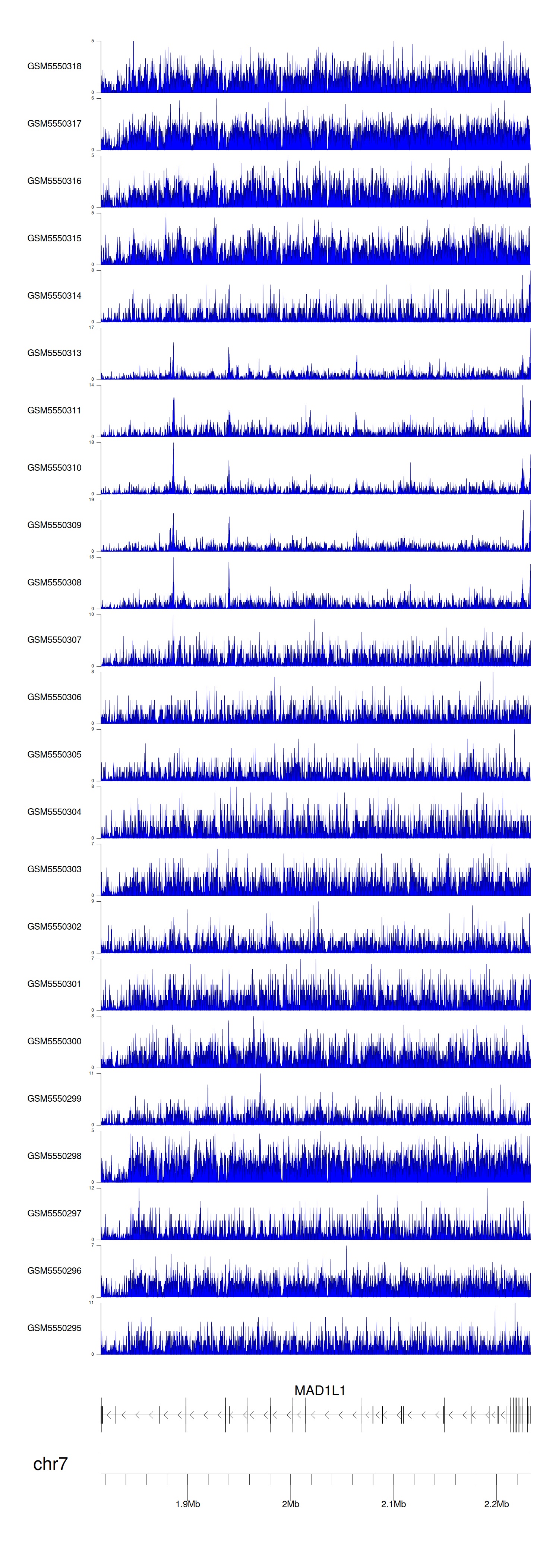 > Dataset: GSE143026 - MAD1L1 peak across samples