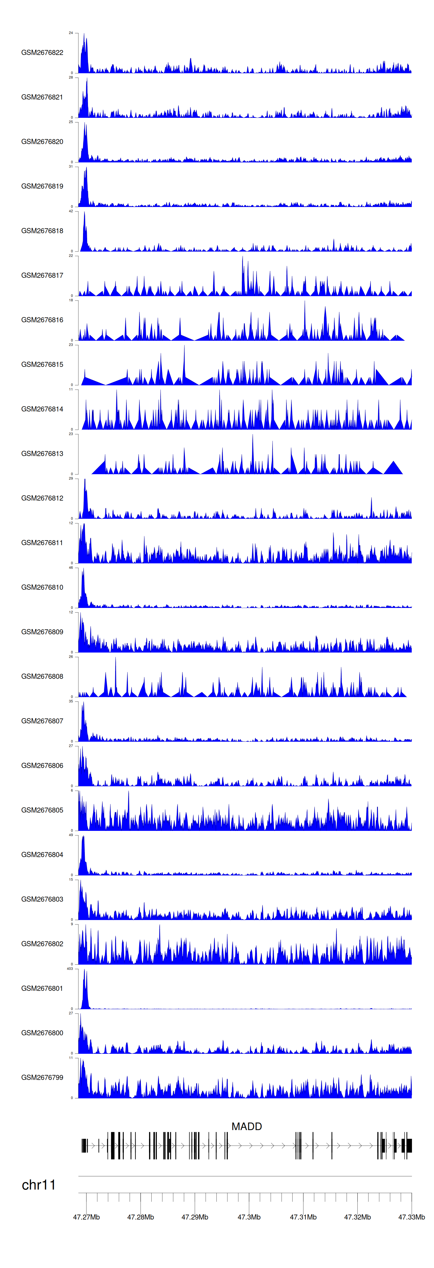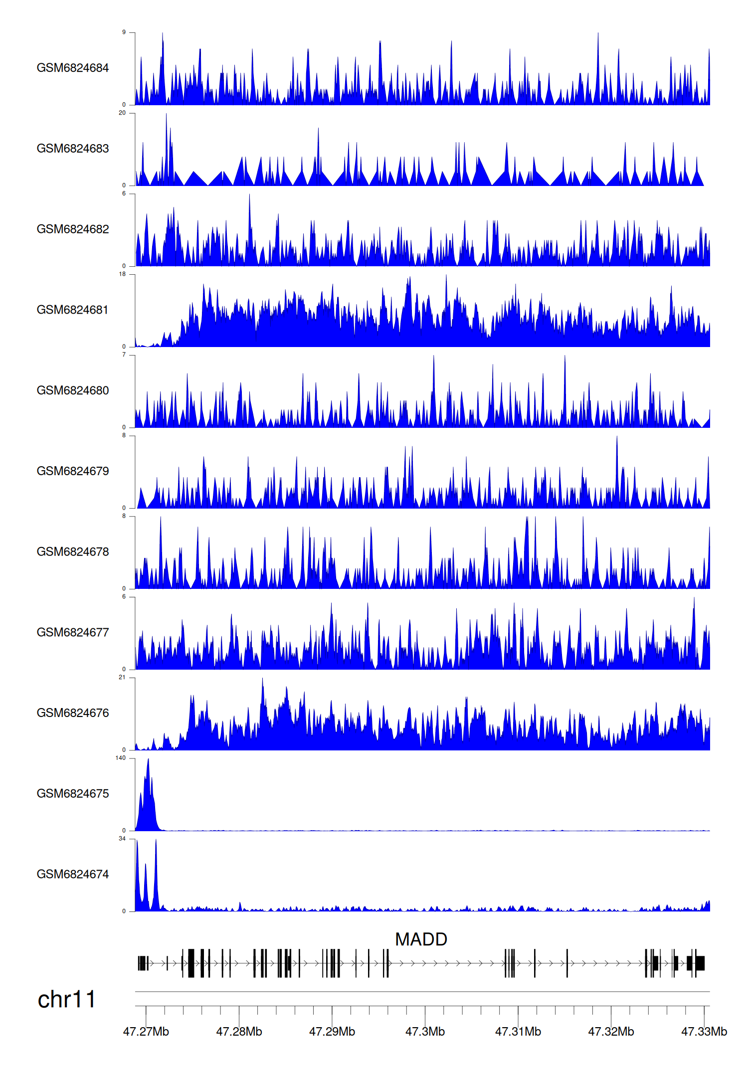 > Dataset: GSE211651 - MADD peak across samples