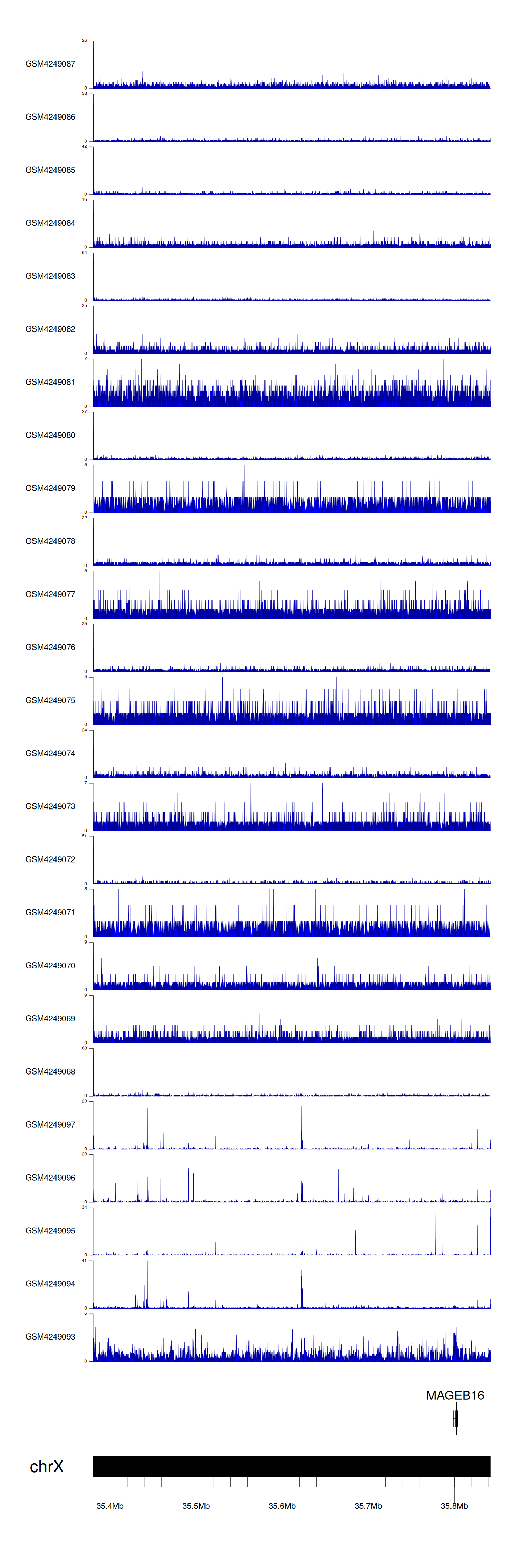 > Dataset: GSE143026 - MAGEB16 peak across samples