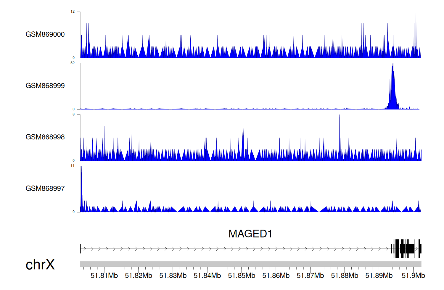 > Dataset: GSE100400 - MAGED1 peak across samples