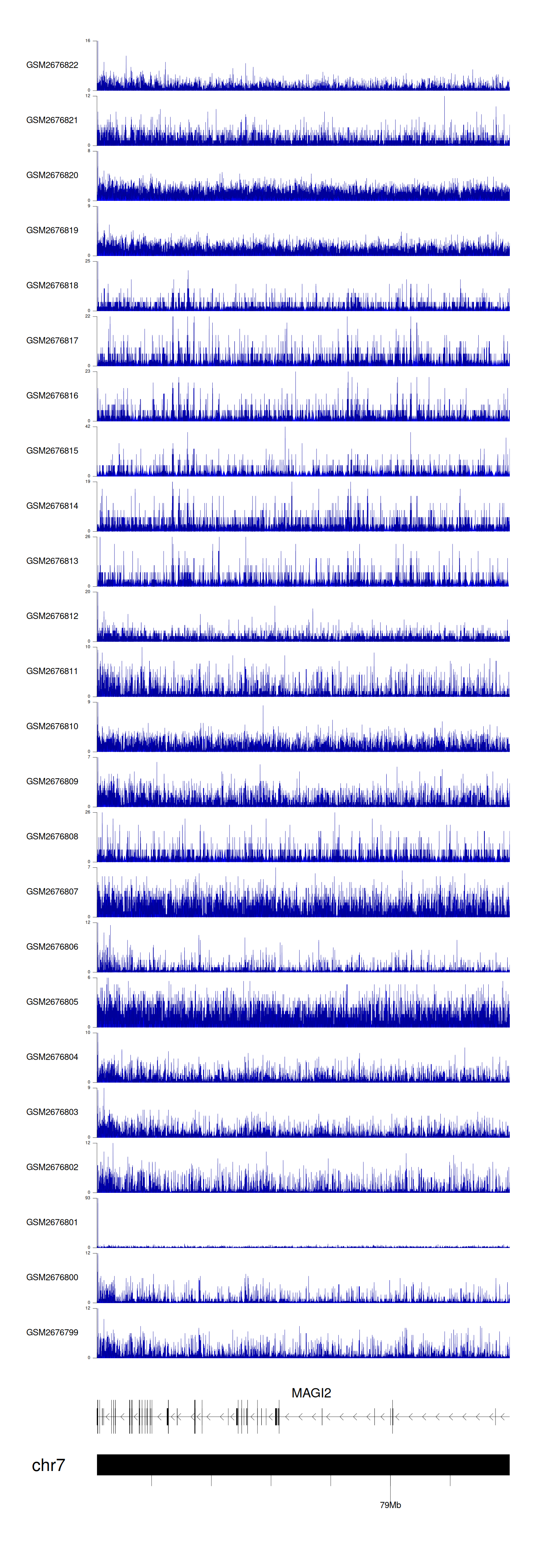 > Dataset: GSE100376 - MAGI2 peak across samples