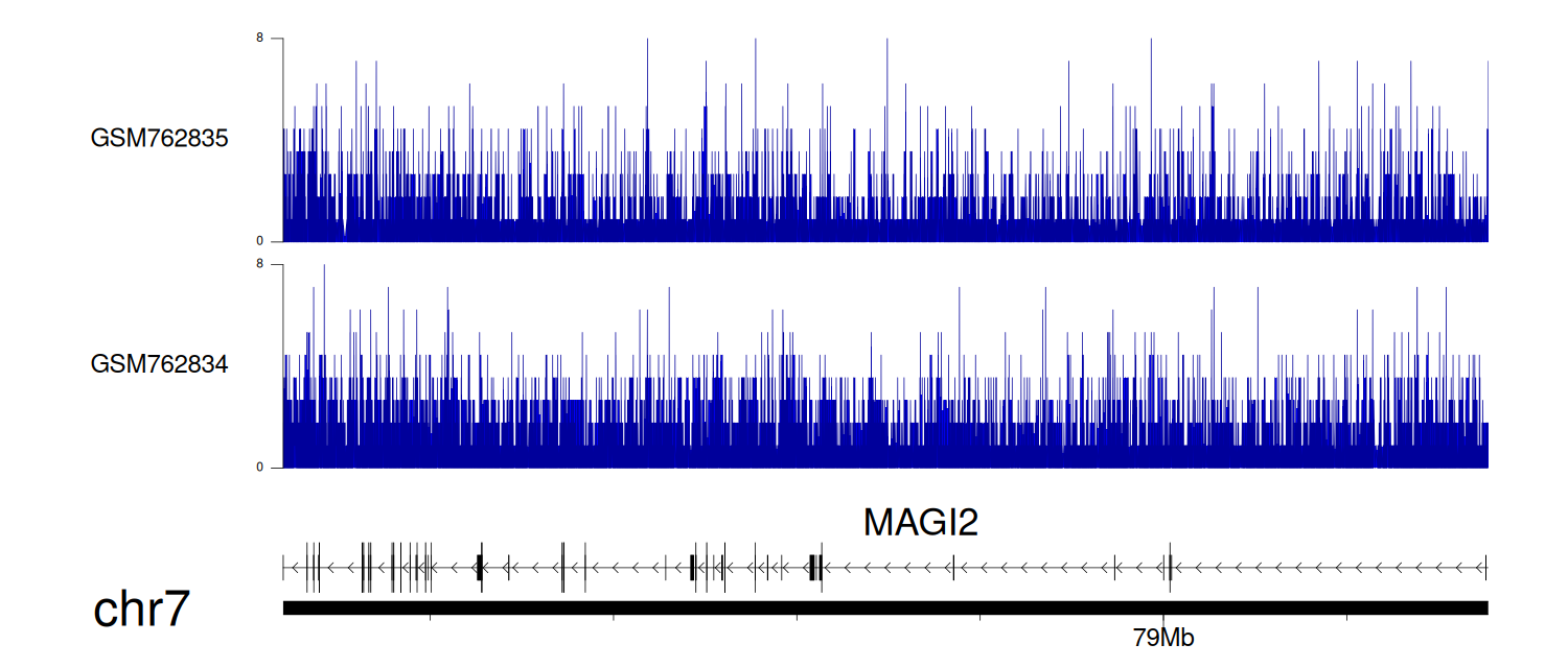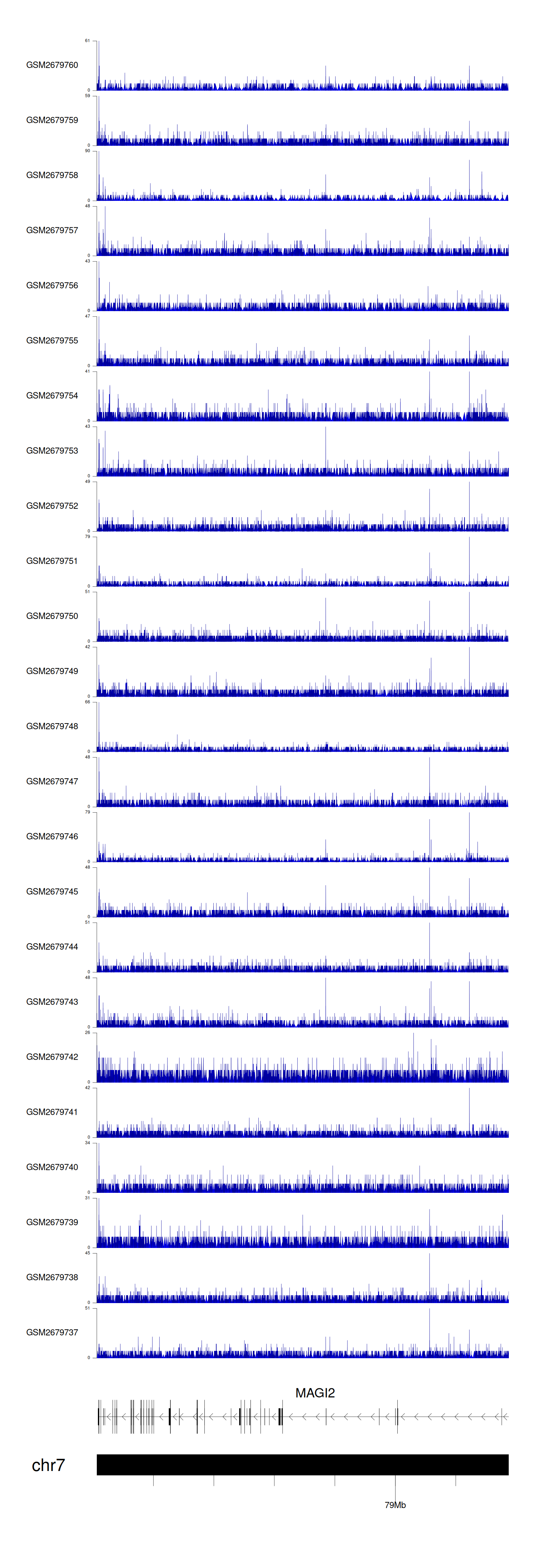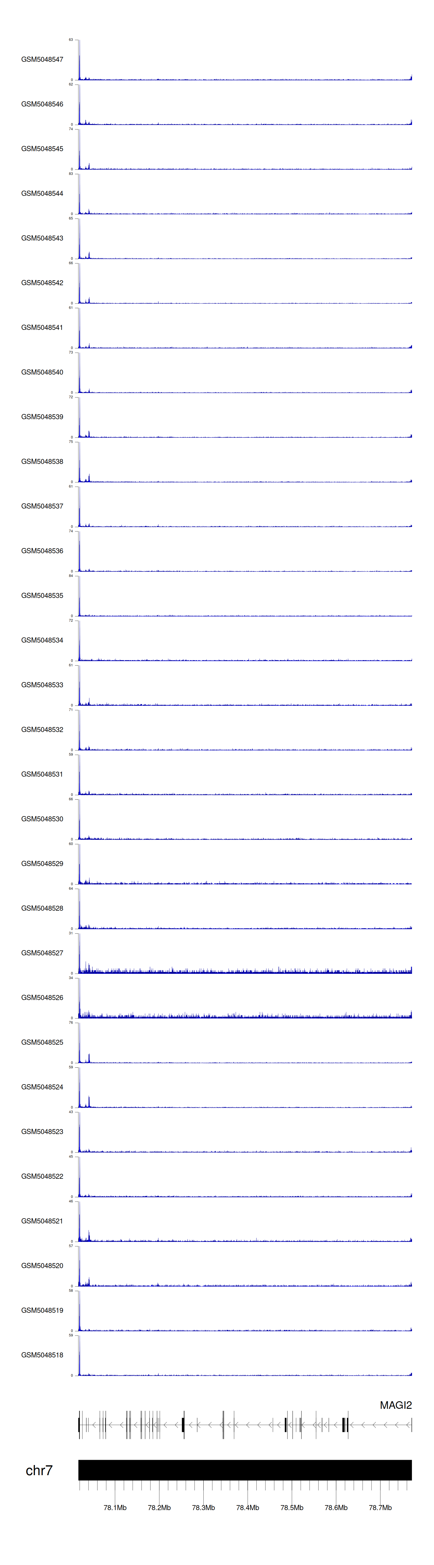 > Dataset: GSE30738 - MAGI2 peak across samples