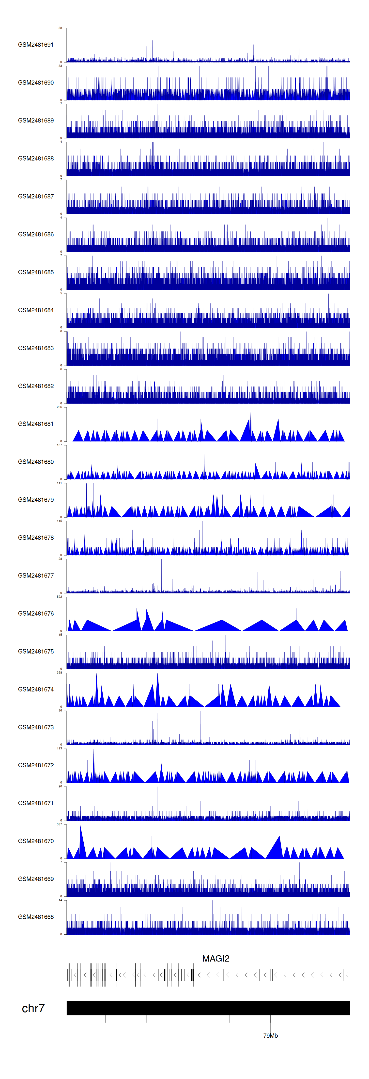 > Dataset: GSE94732 - MAGI2 peak across samples