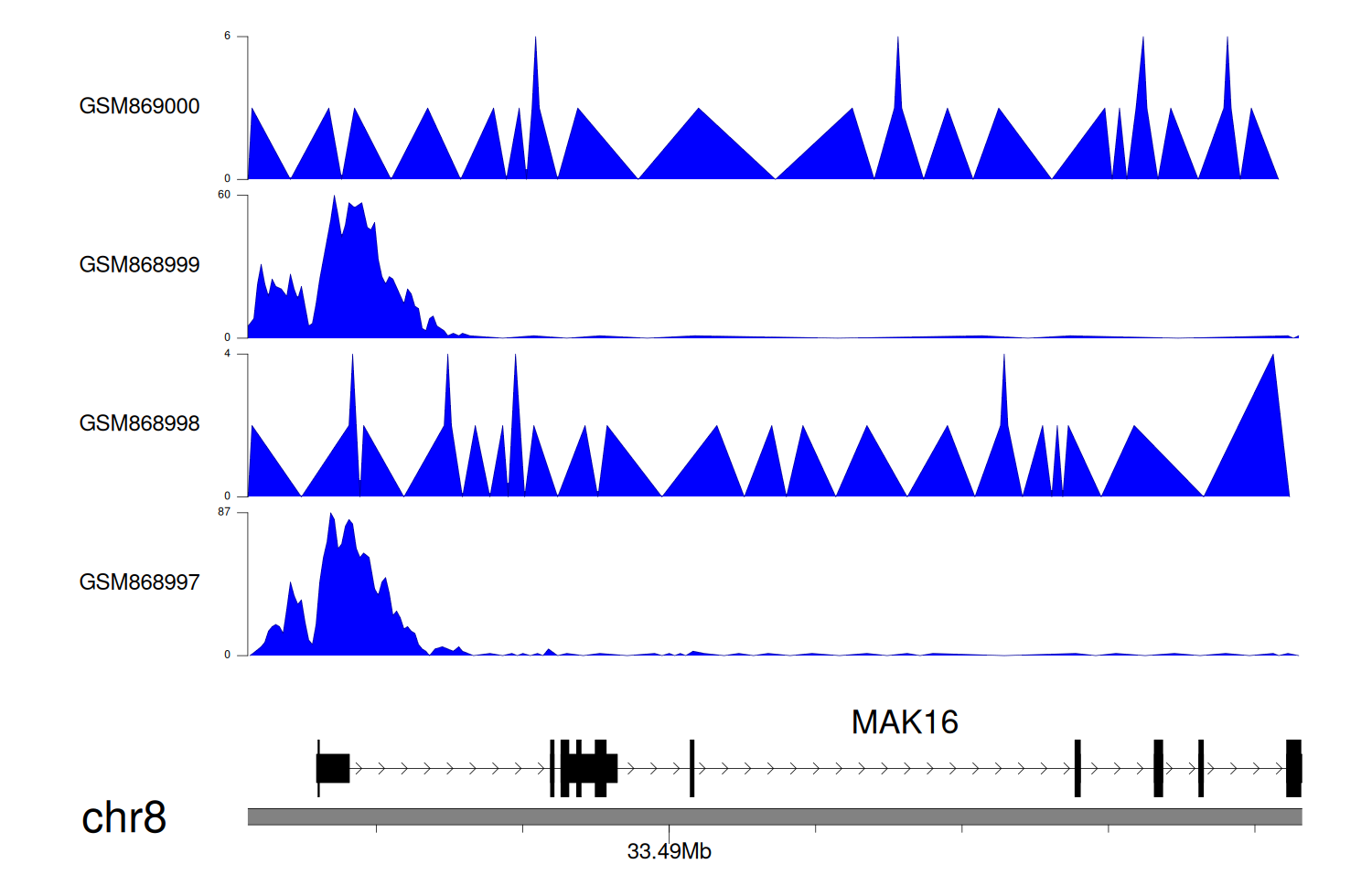 > Dataset: GSE35465 - MAK16 peak across samples