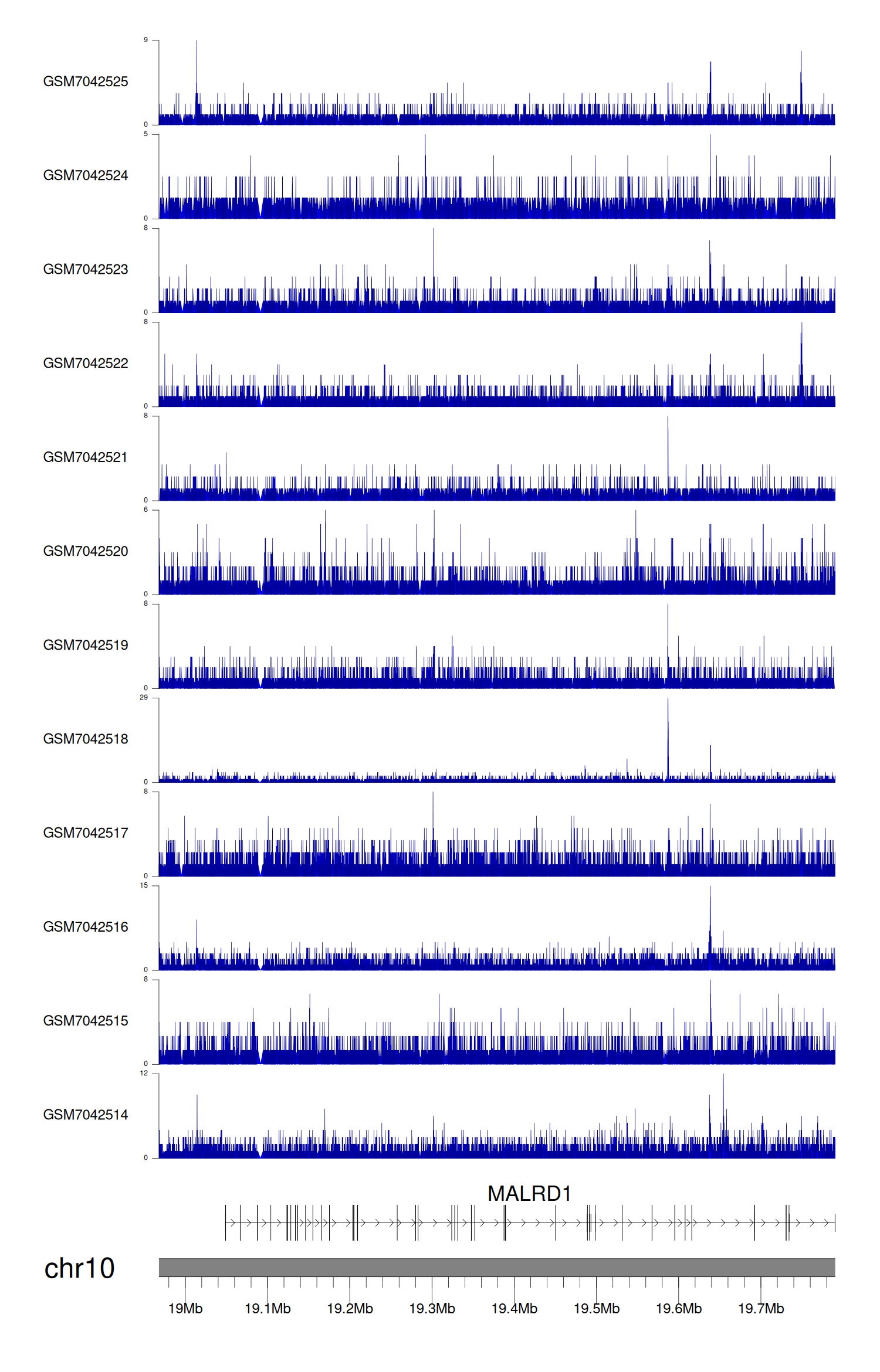 > Dataset: GSE198334 - MALRD1 peak across samples