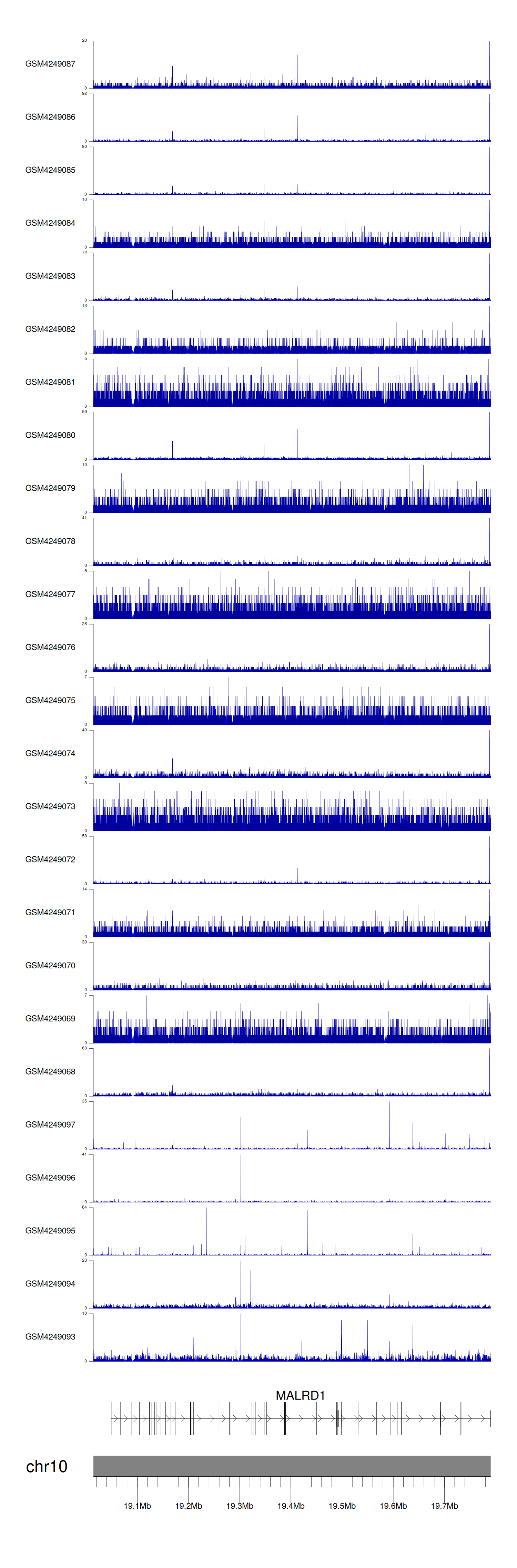 > Dataset: GSE143026 - MALRD1 peak across samples