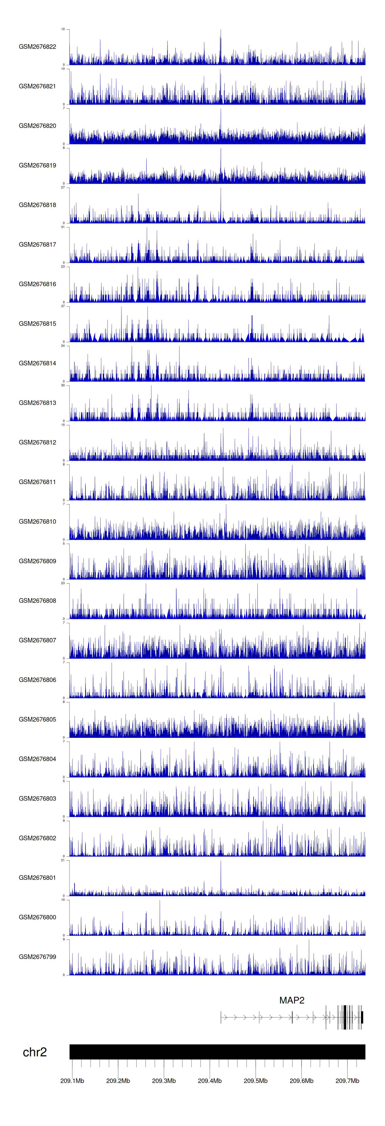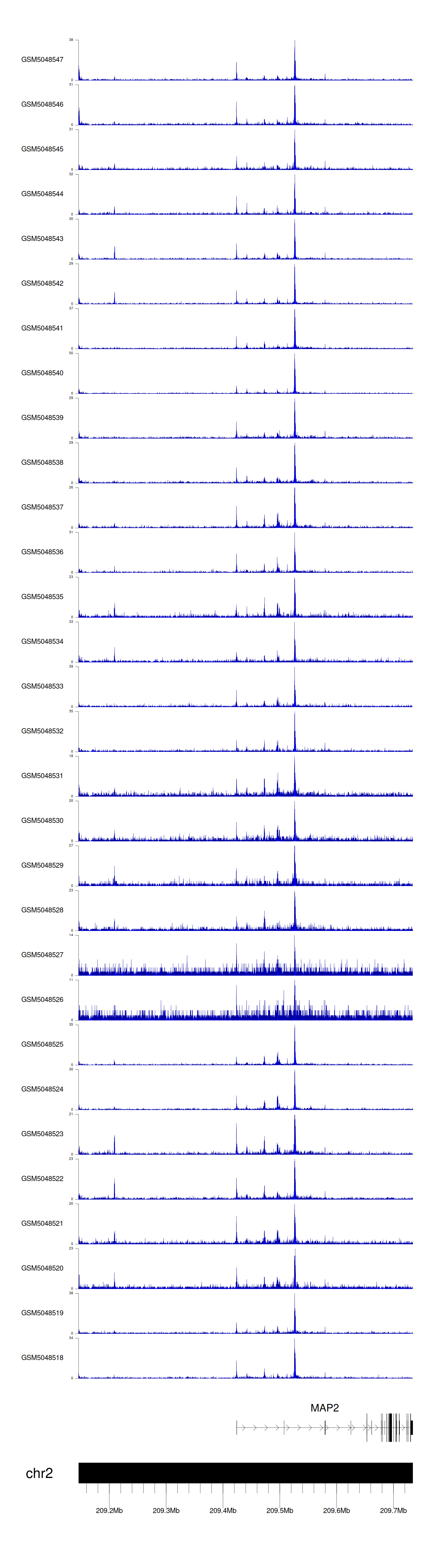 > Dataset: GSE30738 - MAP2 peak across samples