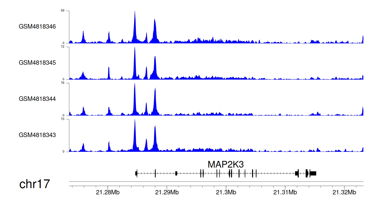 > Dataset: GSE131257 - MAP2K3 peak across samples