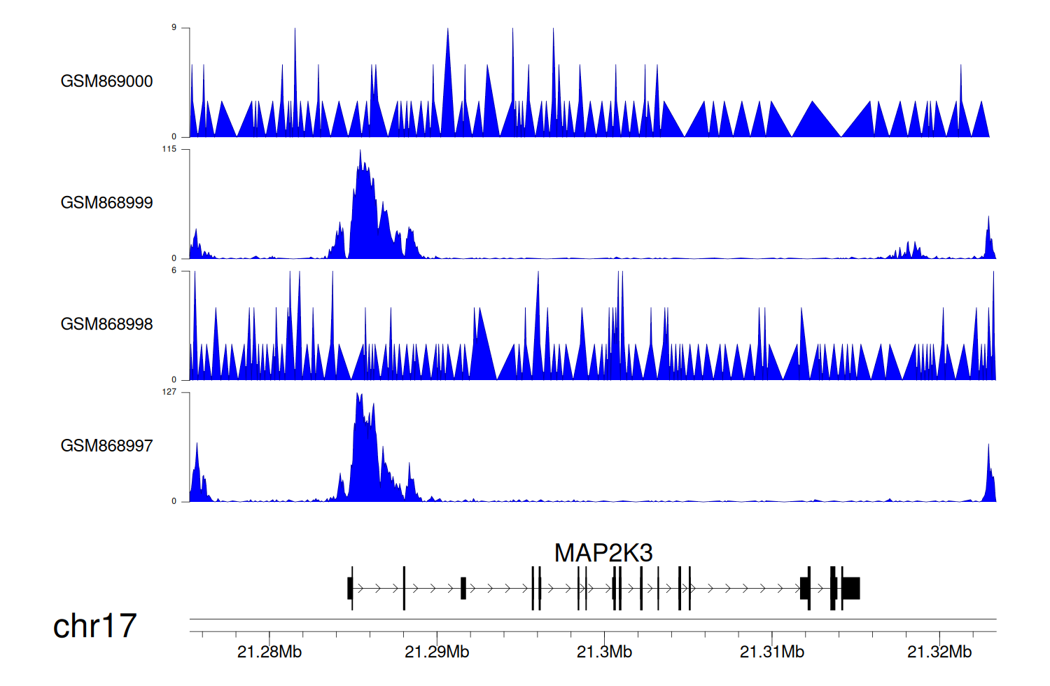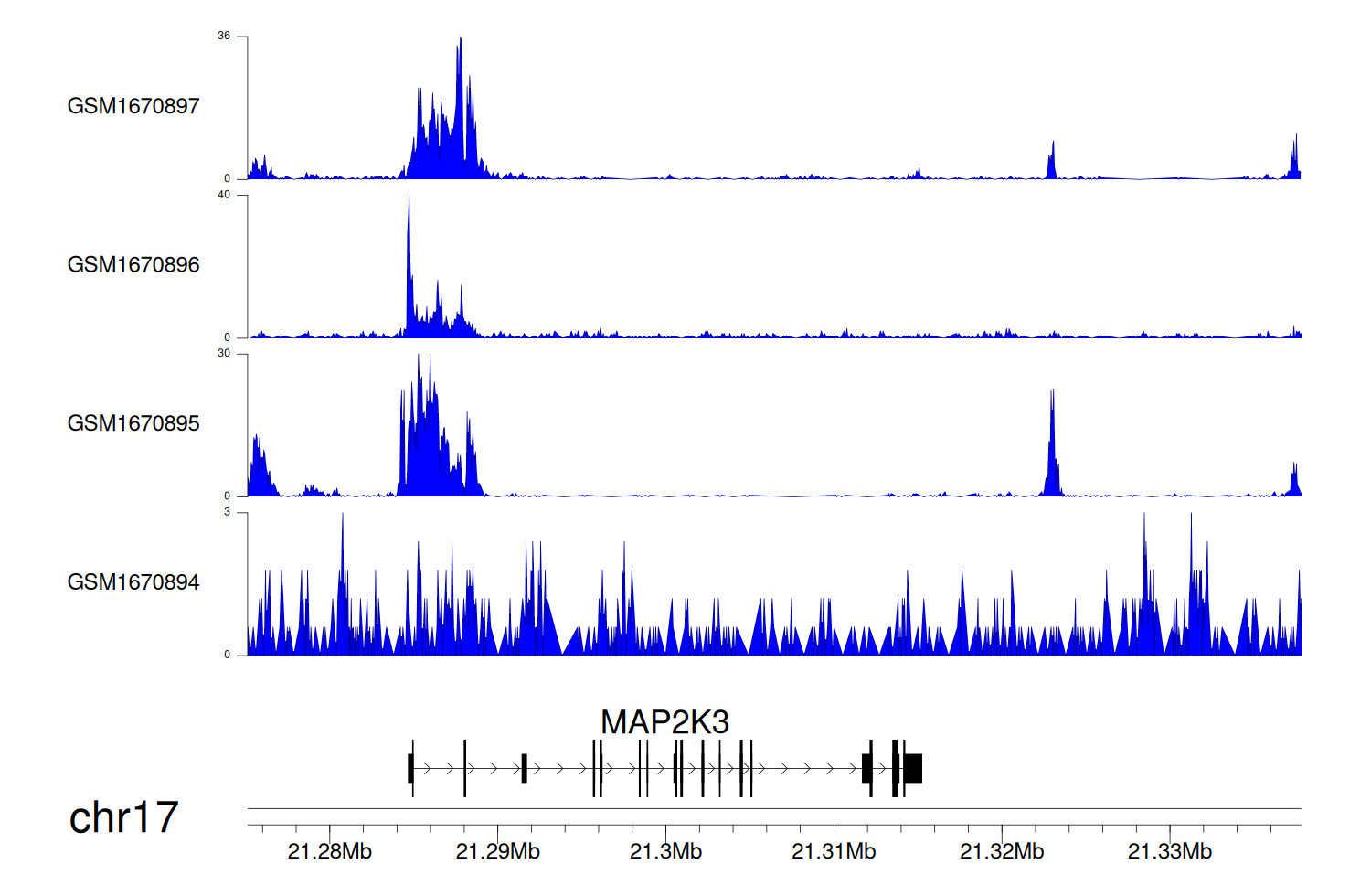 > Dataset: GSE68402 - MAP2K3 peak across samples