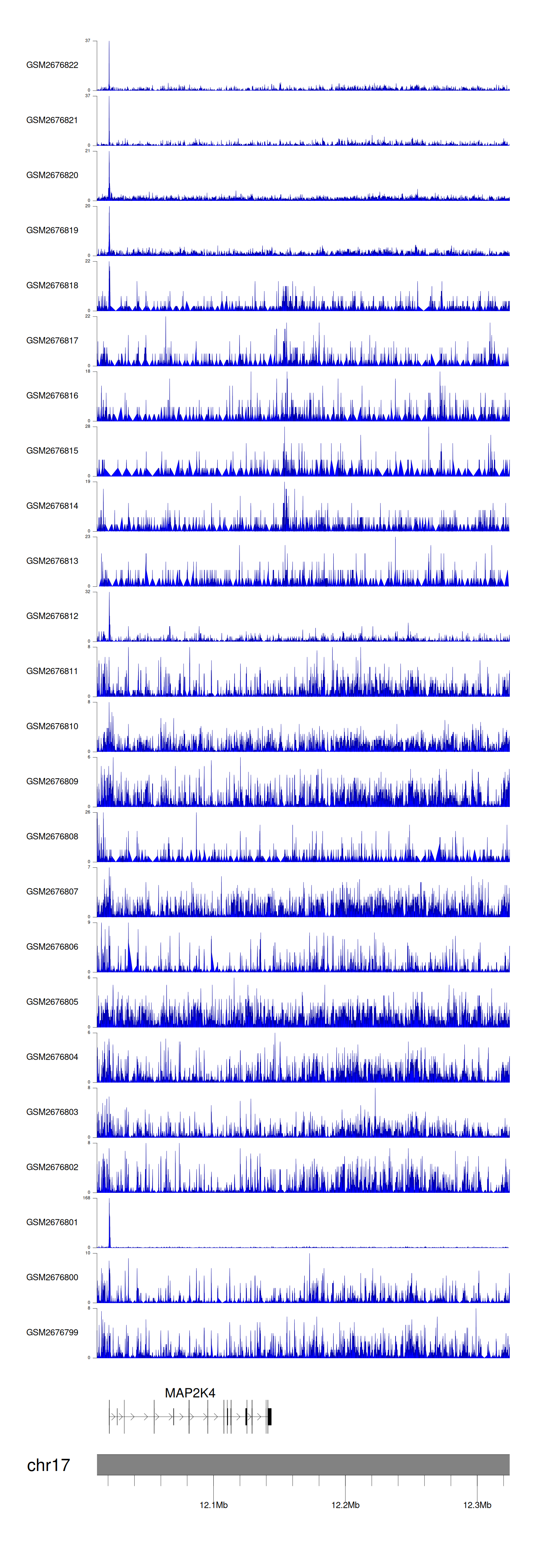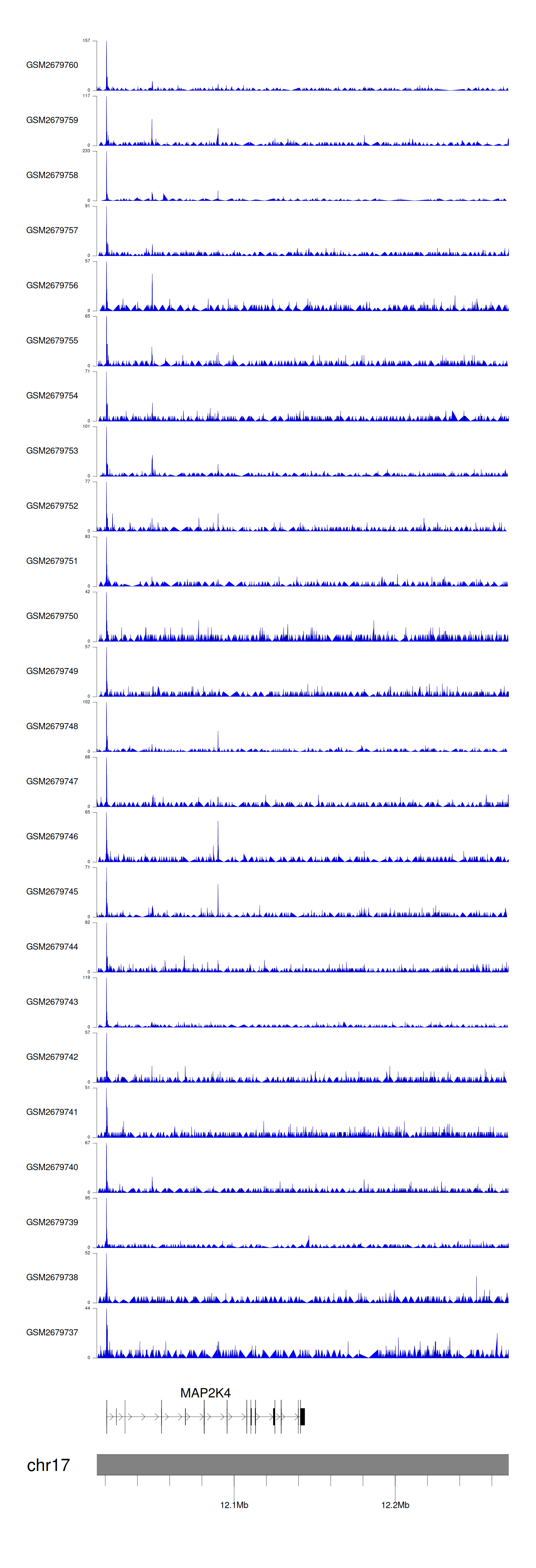 > Dataset: GSE100376 - MAP2K4 peak across samples