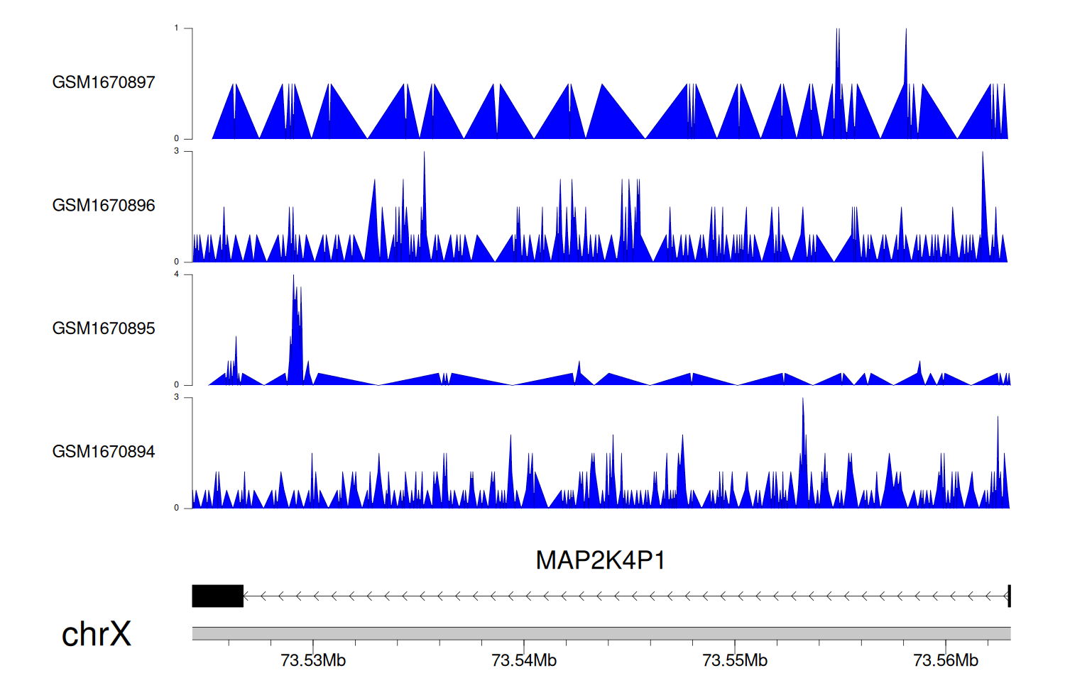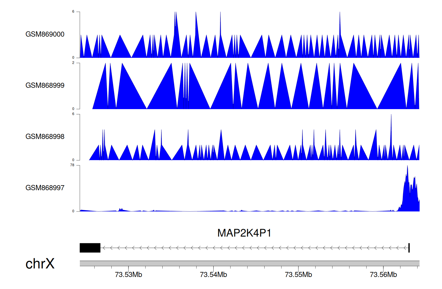 > Dataset: GSE68402 - MAP2K4P1 peak across samples