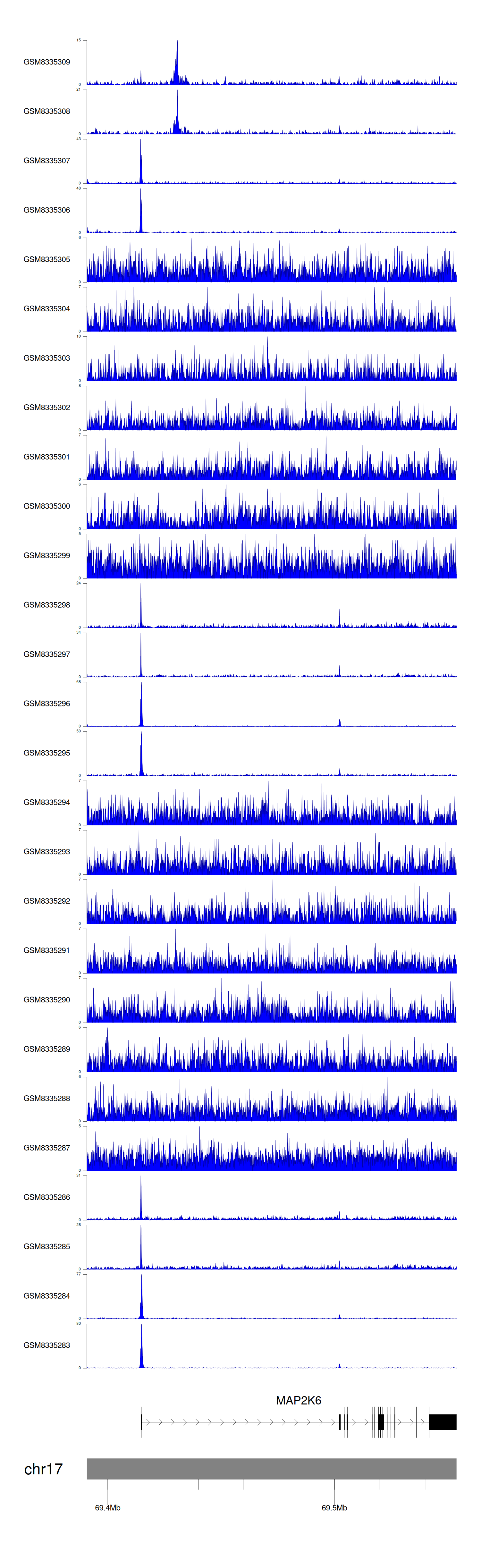 > Dataset: GSE270130 - MAP2K6 peak across samples