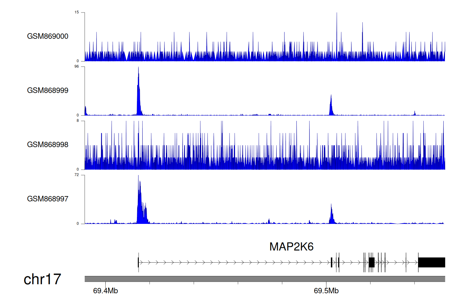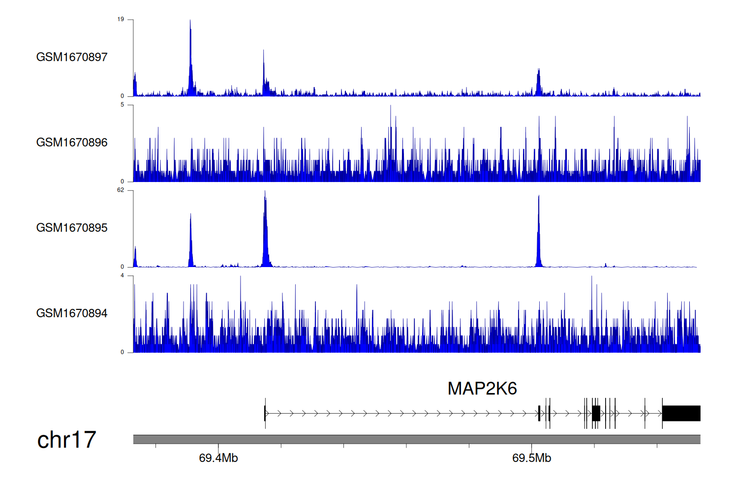 > Dataset: GSE68402 - MAP2K6 peak across samples