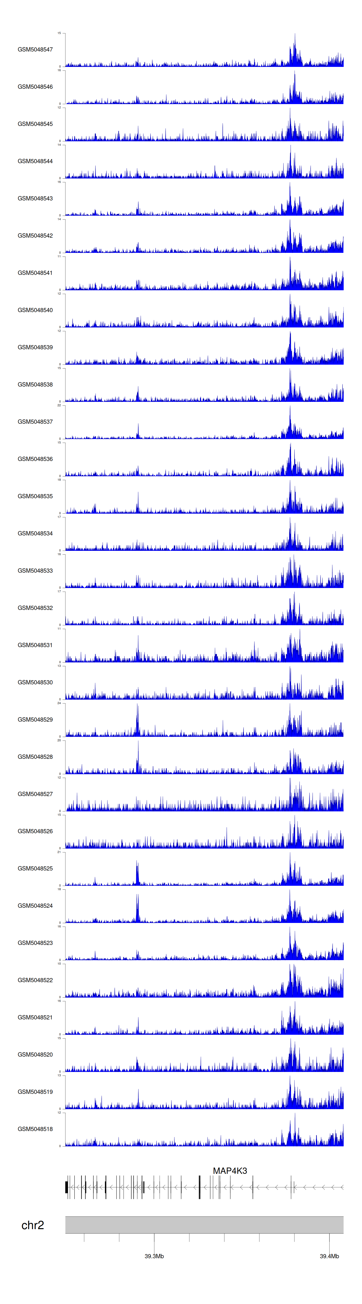 > Dataset: GSE100376 - MAP4K3 peak across samples