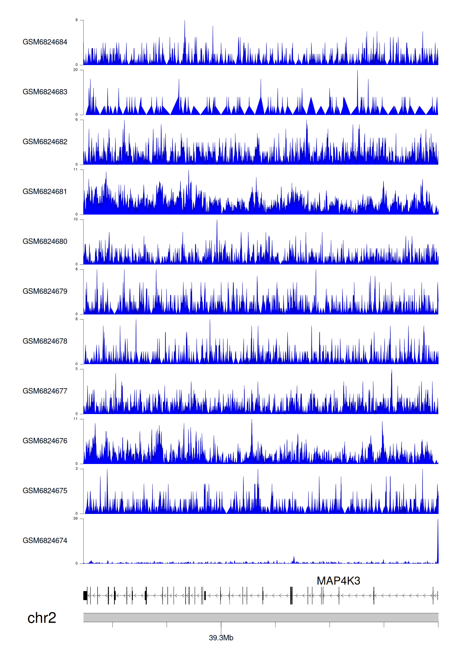 > Dataset: GSE144329 - MAP4K3 peak across samples