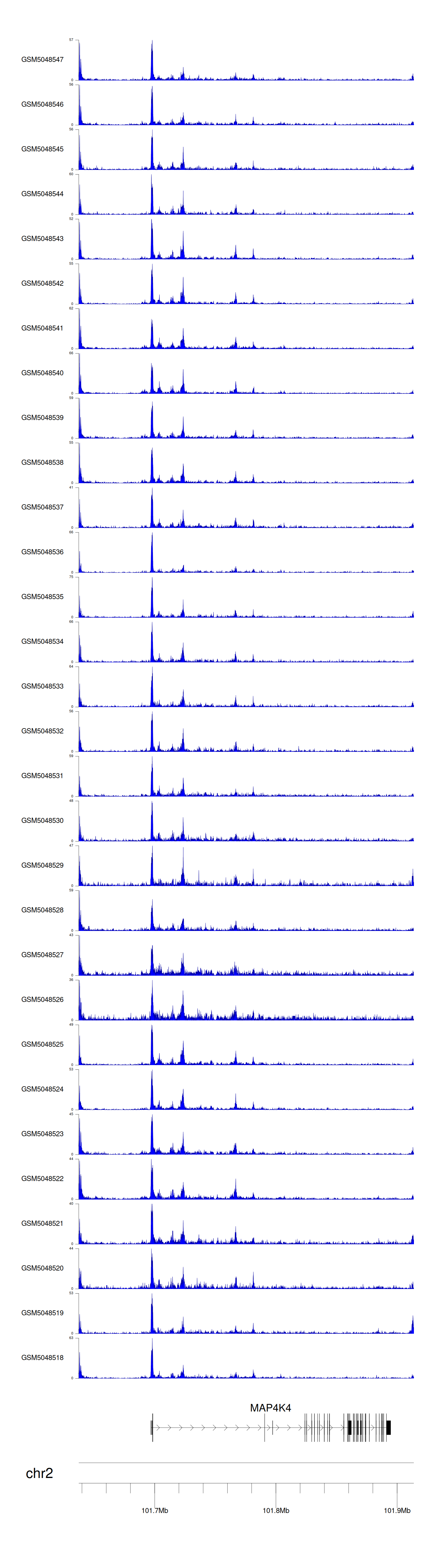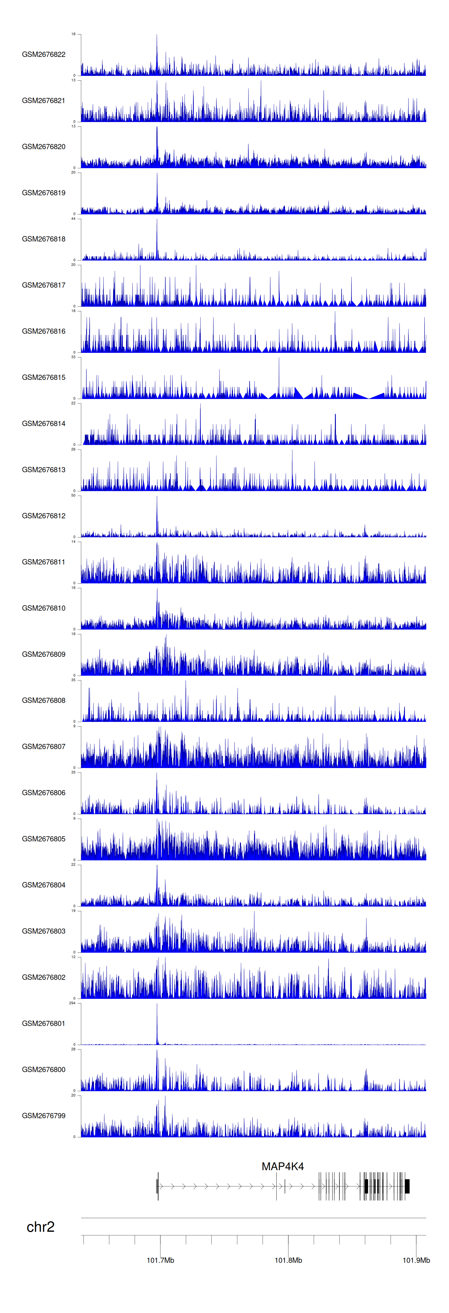> Dataset: GSE100376 - MAP4K4 peak across samples