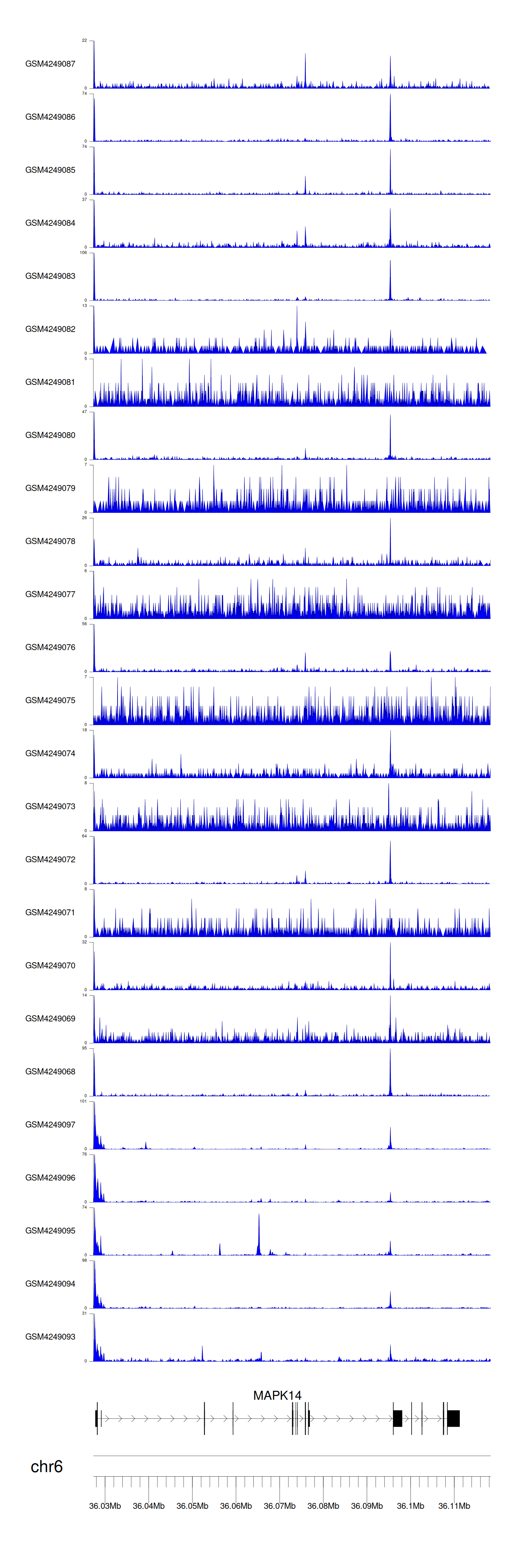 > Dataset: GSE143026 - MAPK14 peak across samples