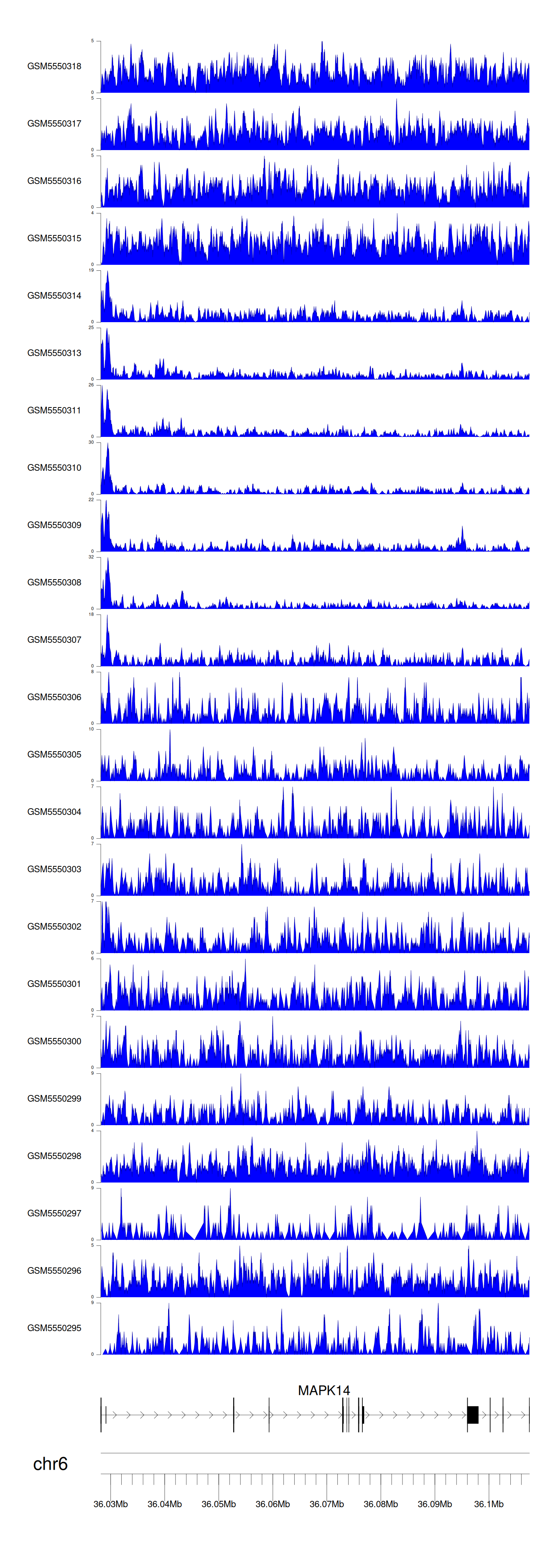 > Dataset: GSE183048 - MAPK14 peak across samples