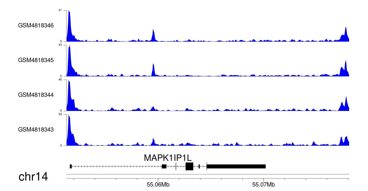 > Dataset: GSE131257 - MAPK1IP1L peak across samples