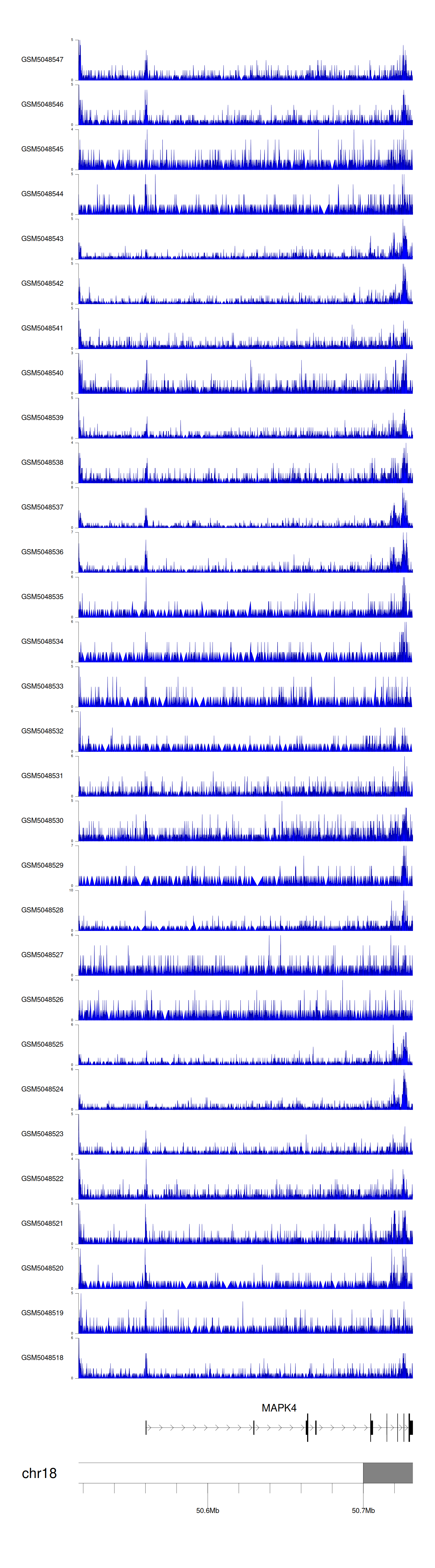 > Dataset: GSE30738 - MAPK4 peak across samples