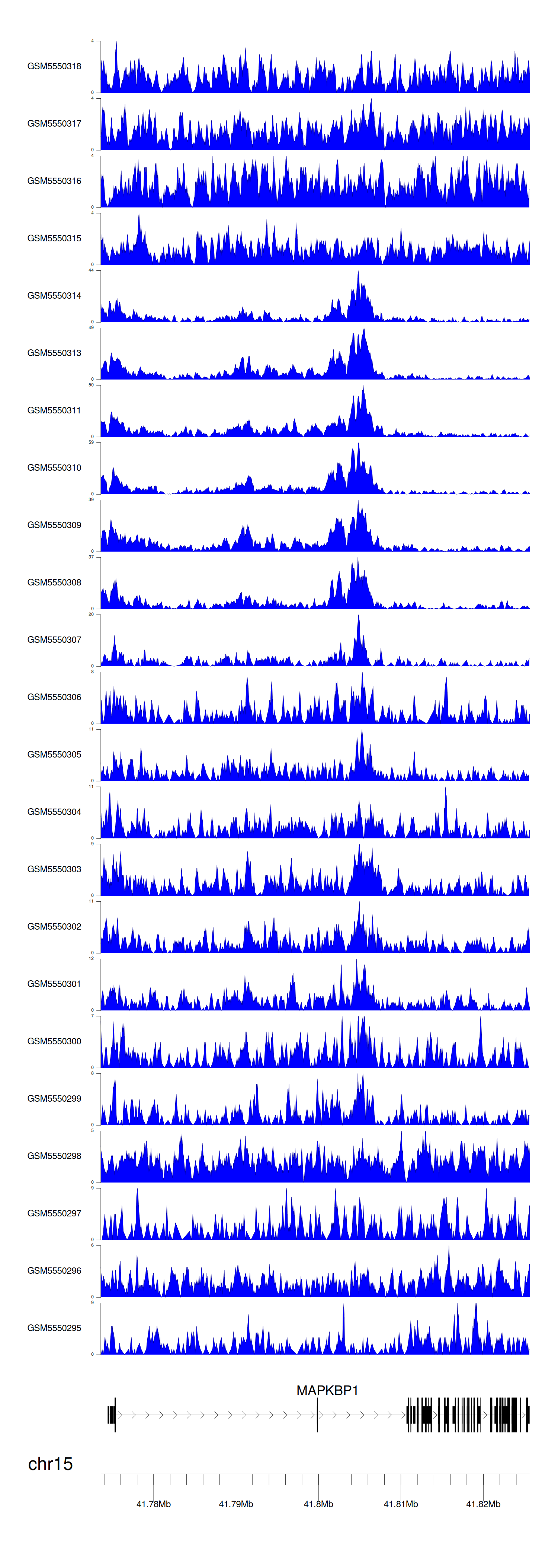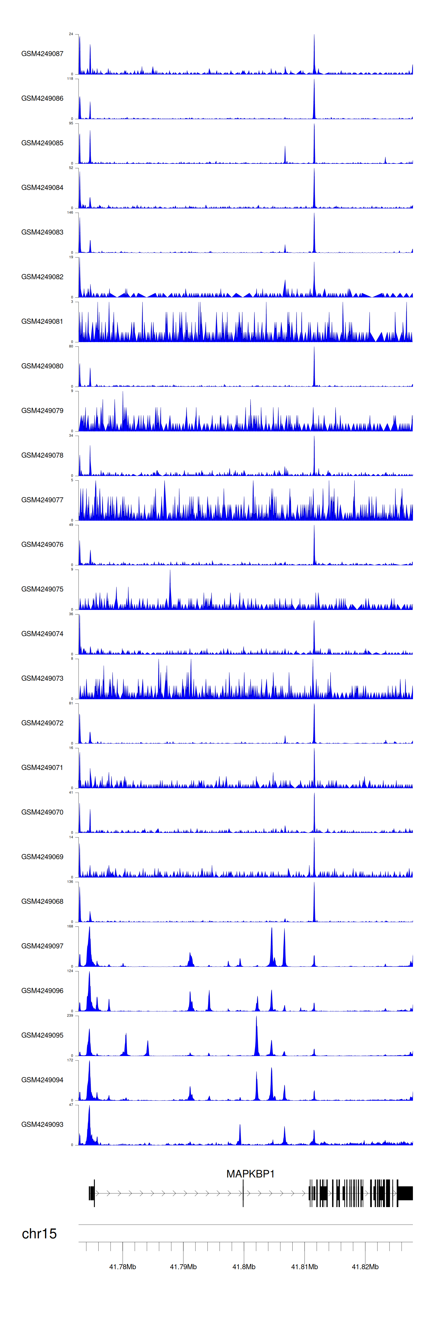 > Dataset: GSE143026 - MAPKBP1 peak across samples