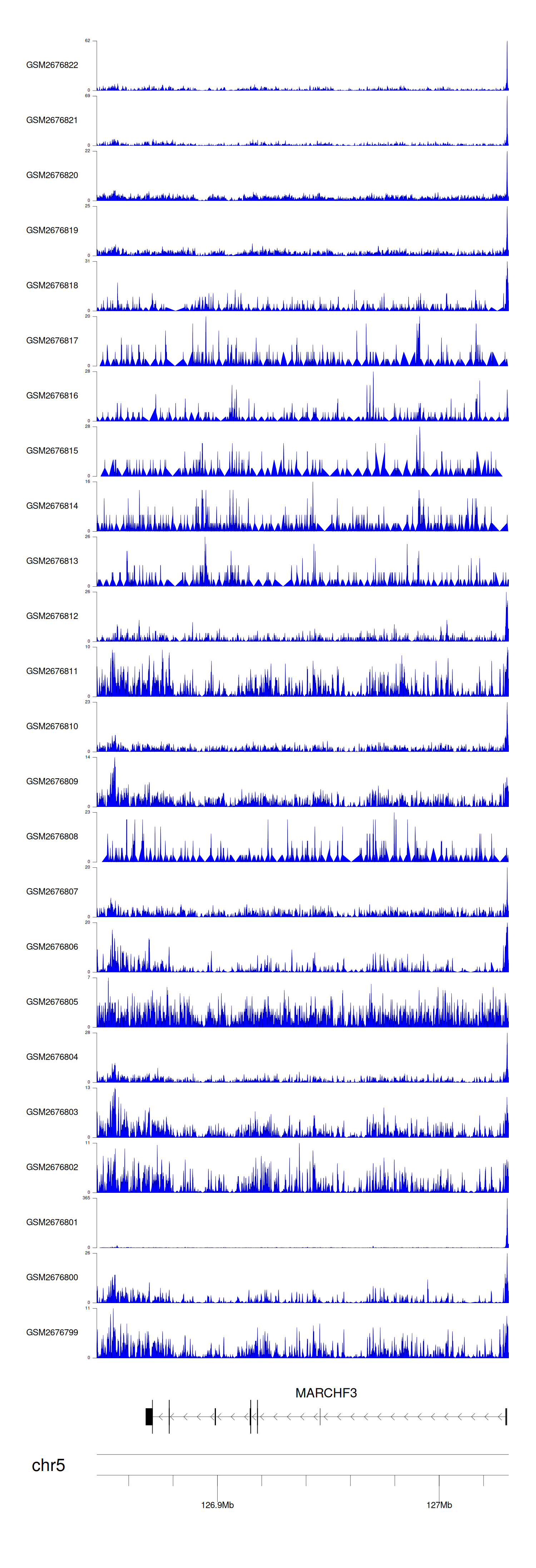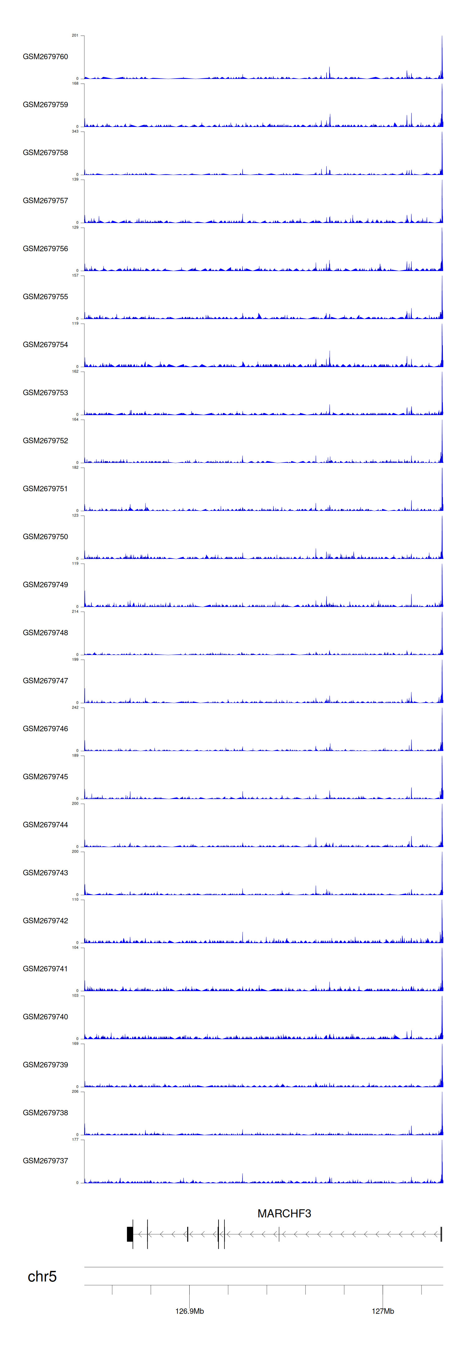 > Dataset: GSE165703 - MARCHF3 peak across samples