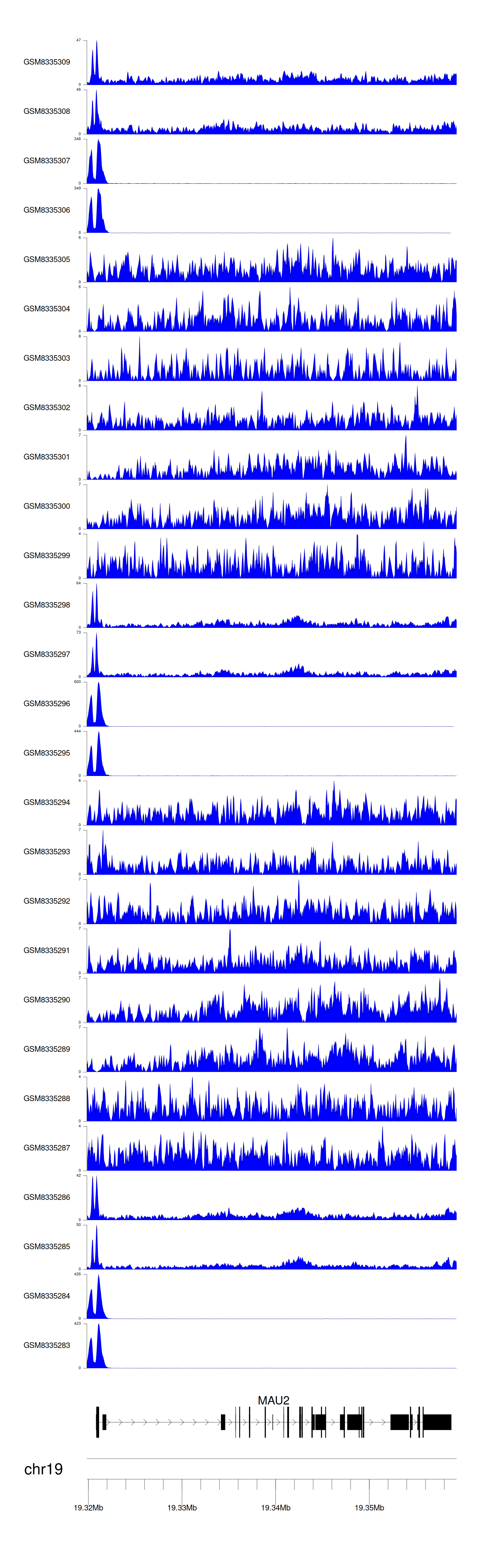 > Dataset: GSE270130 - MAU2 peak across samples