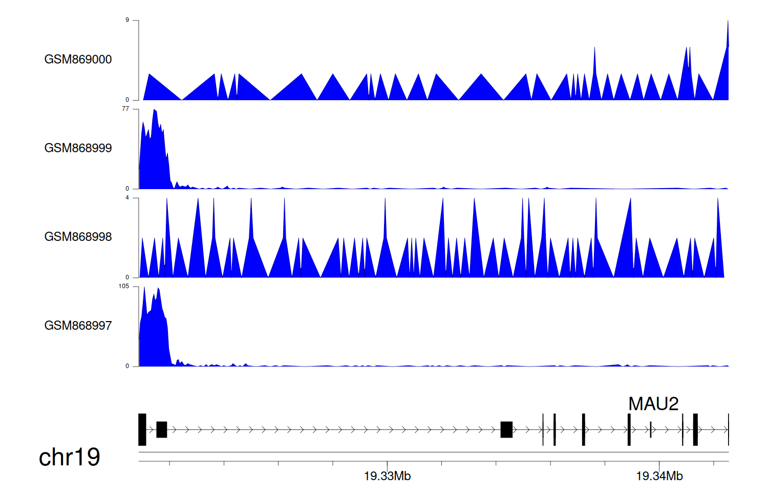 > Dataset: GSE68402 - MAU2 peak across samples
