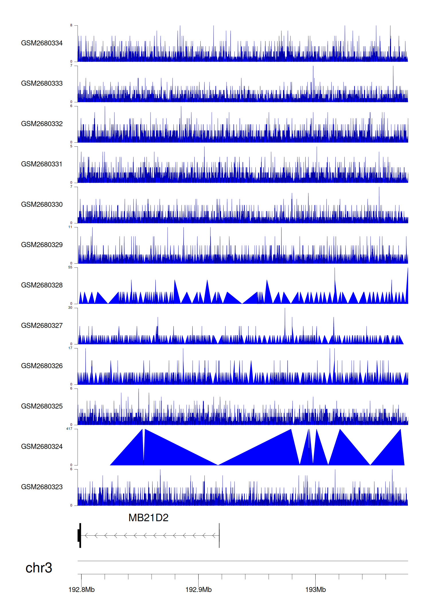 > Dataset: GSE68402 - MB21D2 peak across samples