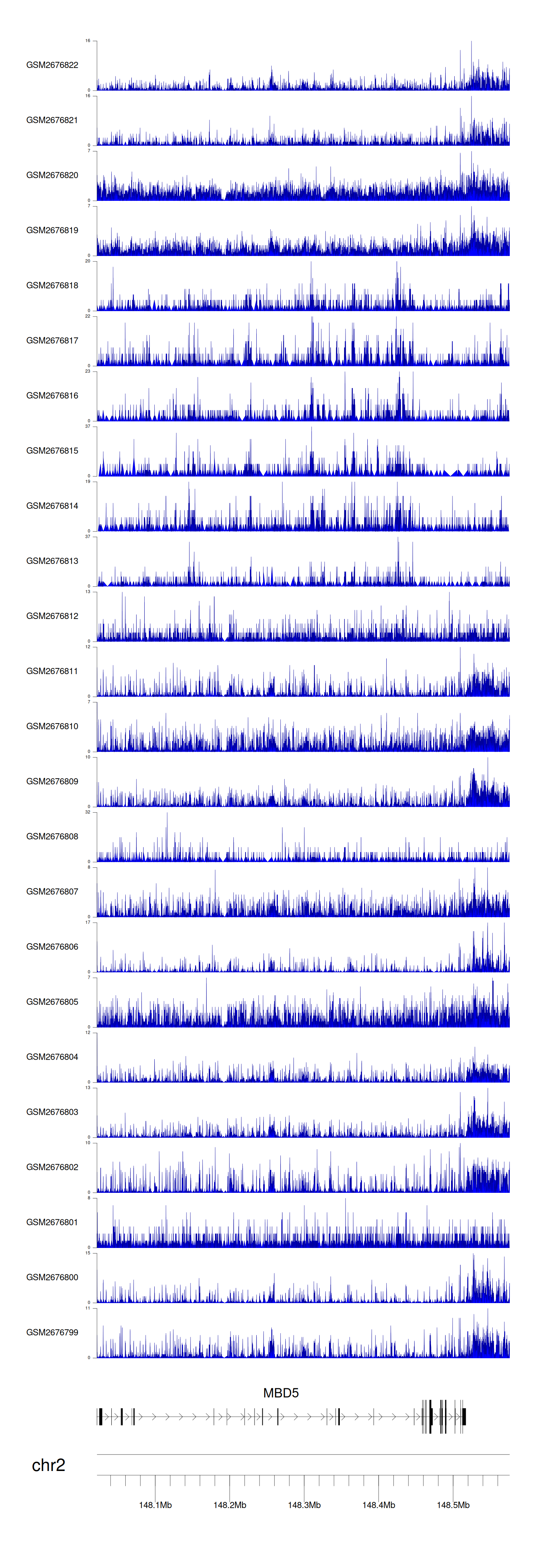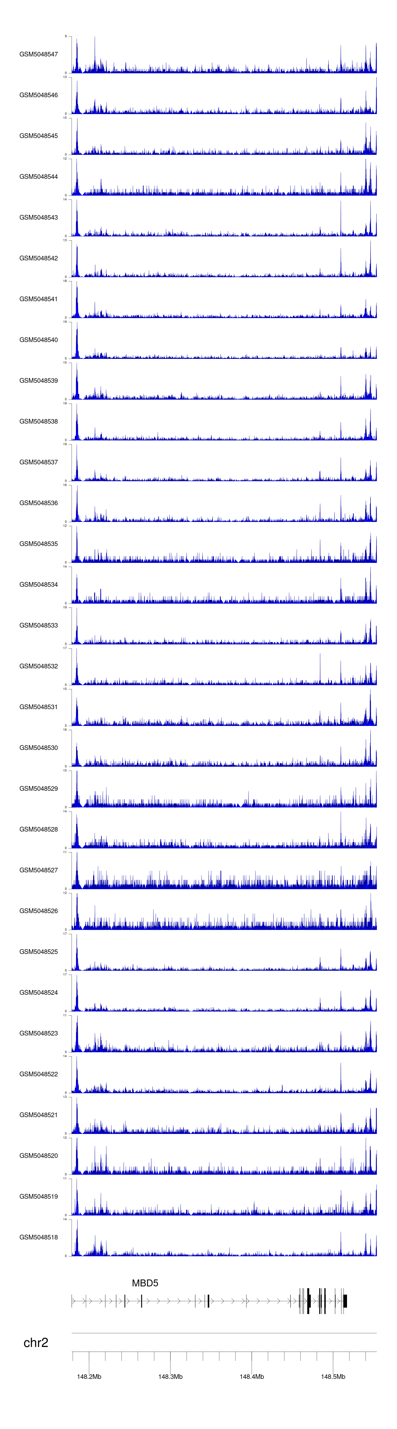 > Dataset: GSE165703 - MBD5 peak across samples