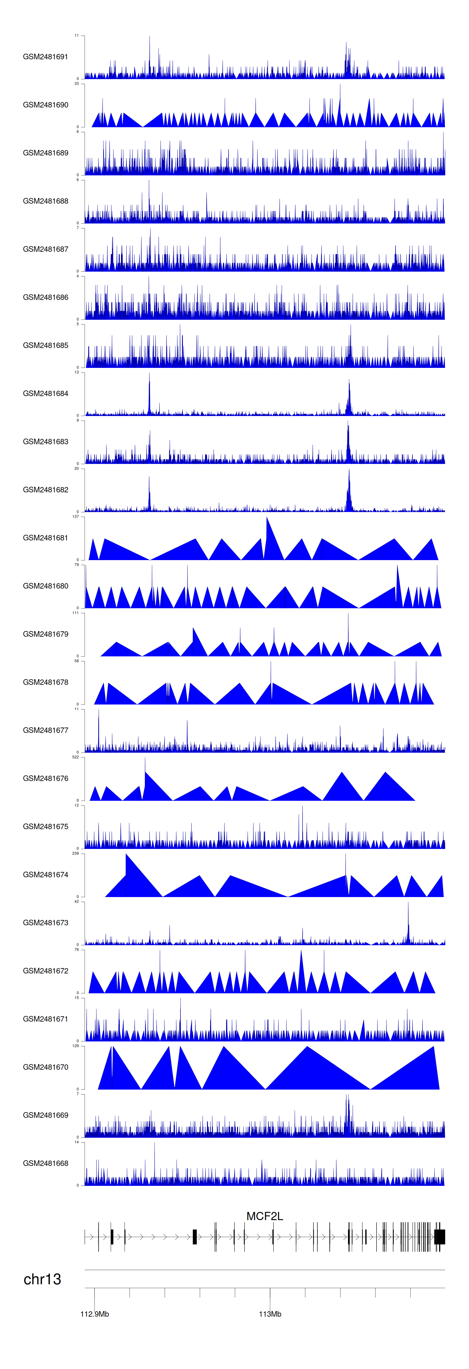 > Dataset: GSE94732 - MCF2L peak across samples