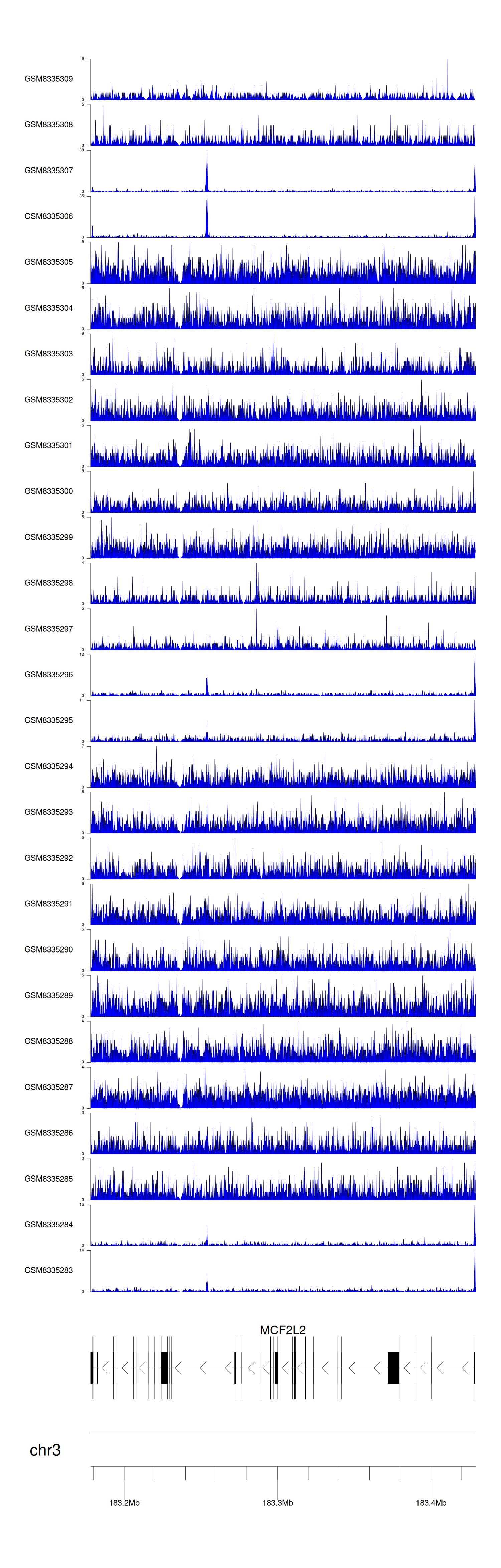 > Dataset: GSE270130 - MCF2L2 peak across samples