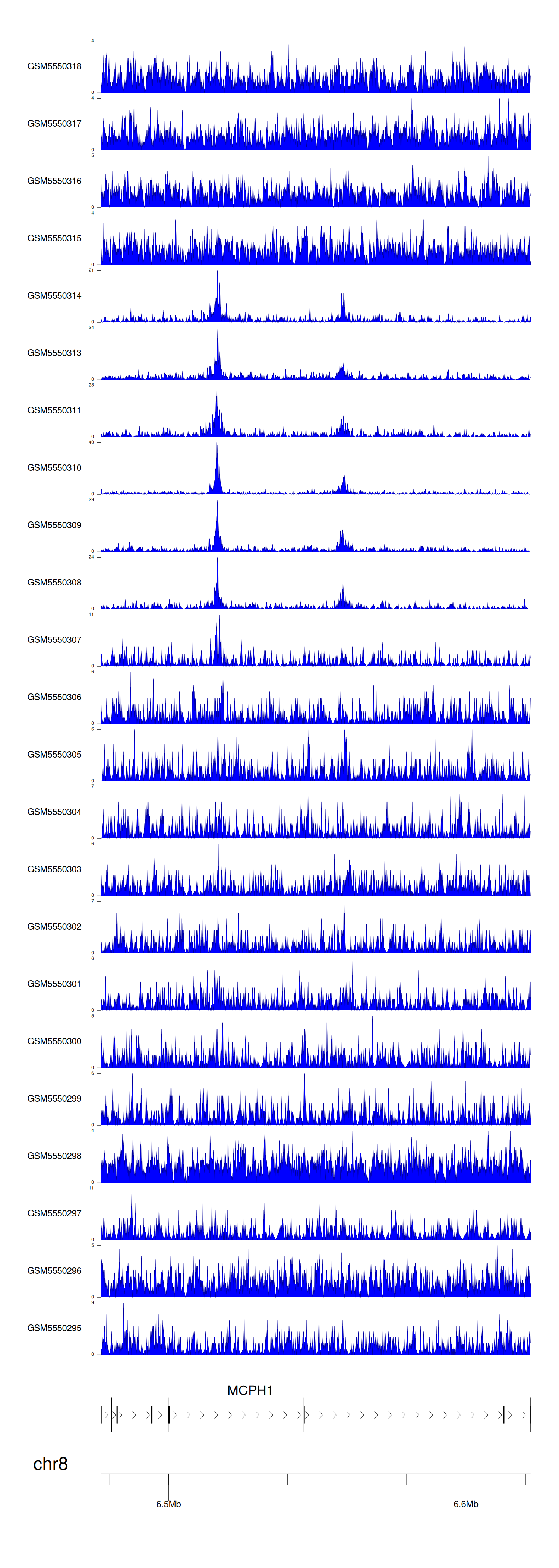 > Dataset: GSE143026 - MCPH1 peak across samples